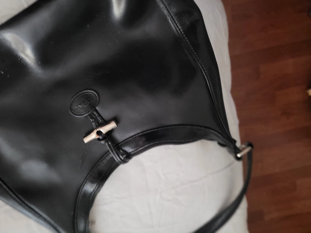 Selling a Longchamp shoulder bag in black leather. It's in good condition and has the classic Longchamp logo on the front hardware and zipper. Perfect for everyday use!