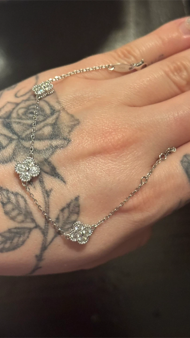 This is a Van Cleef & Arpels Alhambra bracelet in what appears to be a silver tone. It features the iconic clover design. It's in great condition and ready to wear!