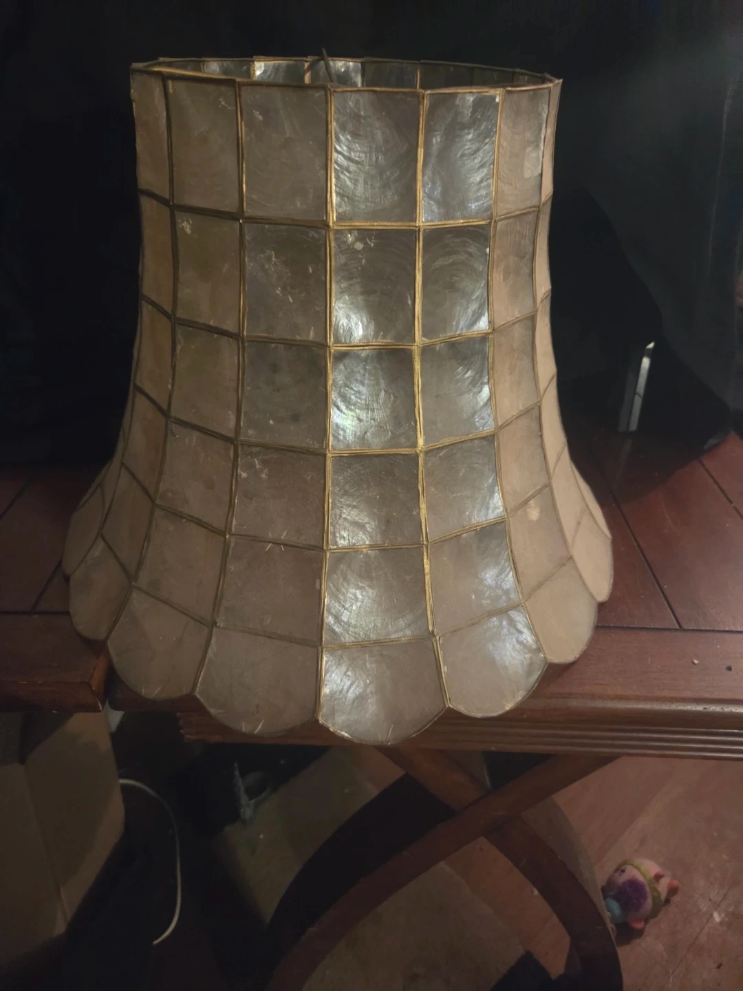 Selling a lamp shade made of capiz shell. It has a unique design and would be a great addition to any room! It is in good condition.