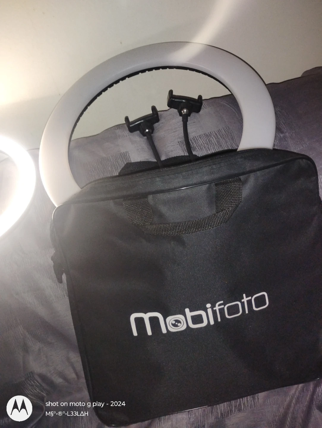 Selling 3 Mobifoto selfie ring light, about 10 inches in diameter. It comes with its original carrying bag for easy storage and transport. Perfect for video calls or adding some extra light to your photos! You can buy a 10 inch and a 12 inch and a 17 inch light. Ring plus a stylish carry case.