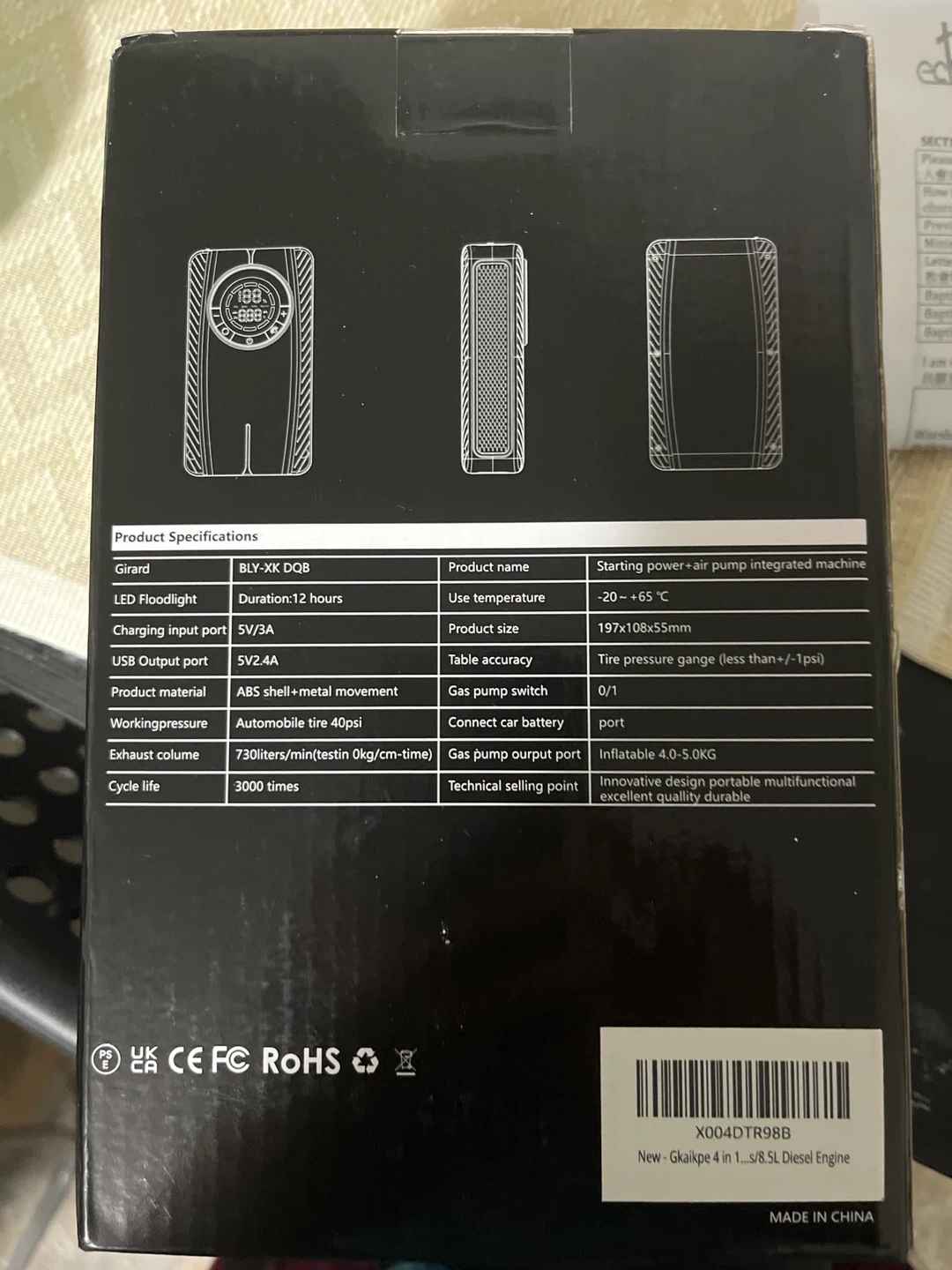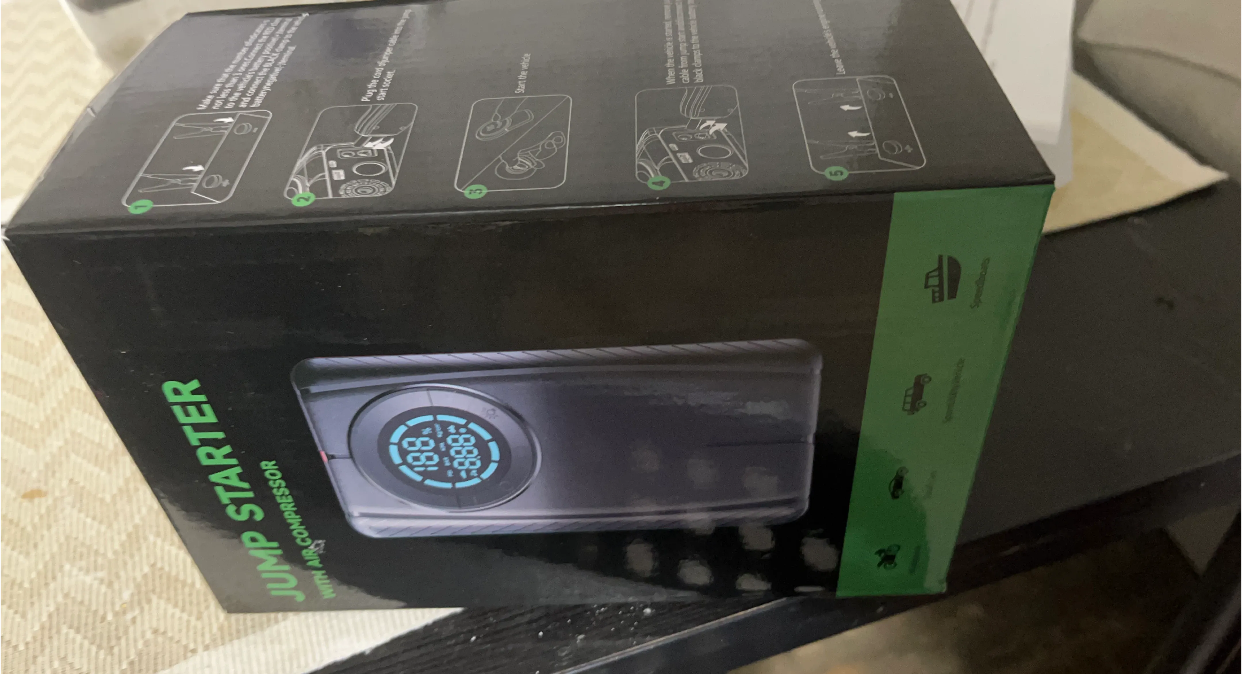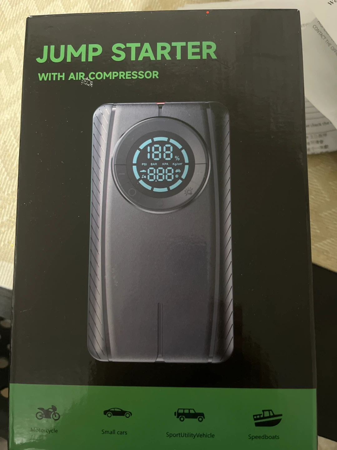 Selling a Jump Starter with Air Compressor! It comes with its original box and all included components. It's perfect for cars, motorcycles, and speedboats!