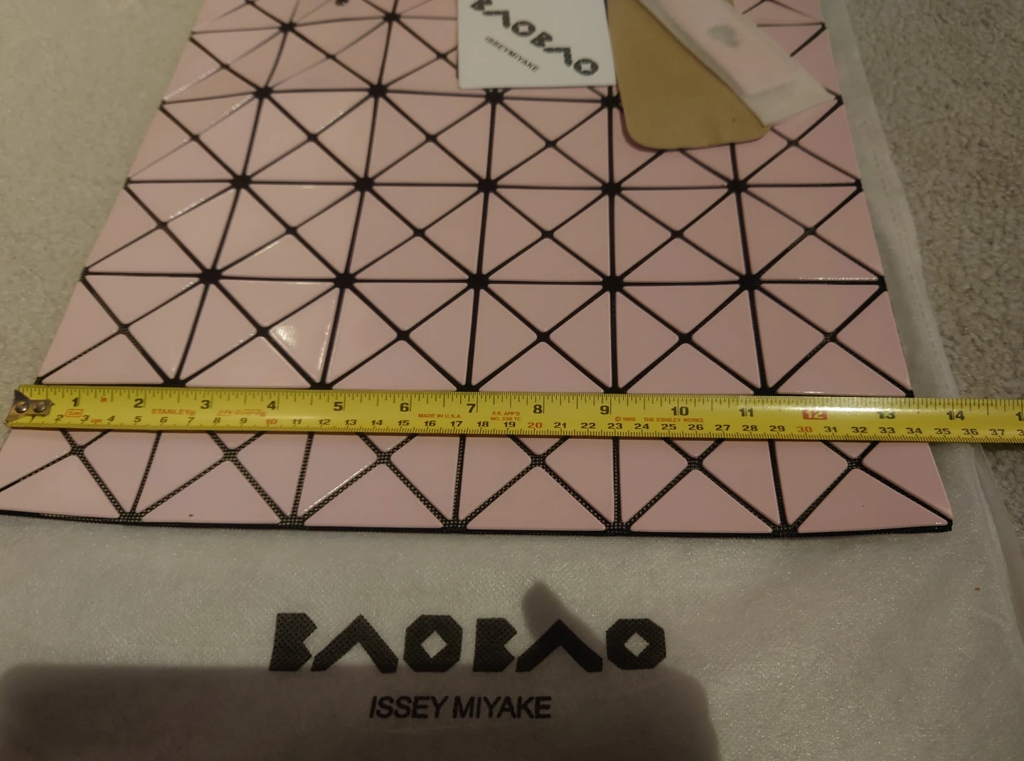 Here's a lovely Issey Miyake Baobao tote bag in pink! It's in great condition and ready for a new owner. The bag features the iconic geometric pattern that Baobao is known for.
