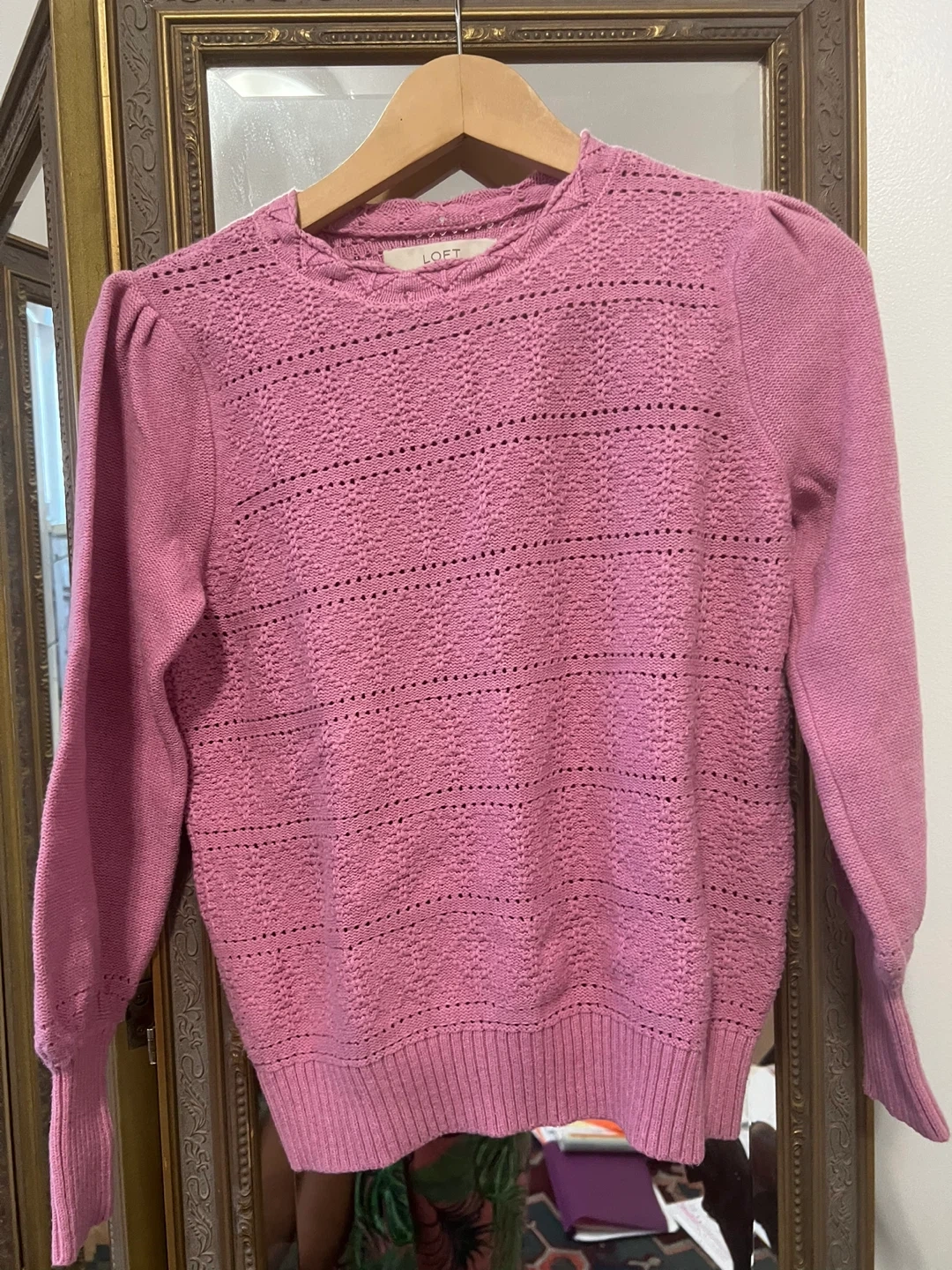 Selling a cute LOFT pink knit sweater in size medium! It's in great condition and ready for a new home. The material is soft and comfortable, 100%cotton perfect for layering or wearing on its own. Feel free to reach out with any questions!