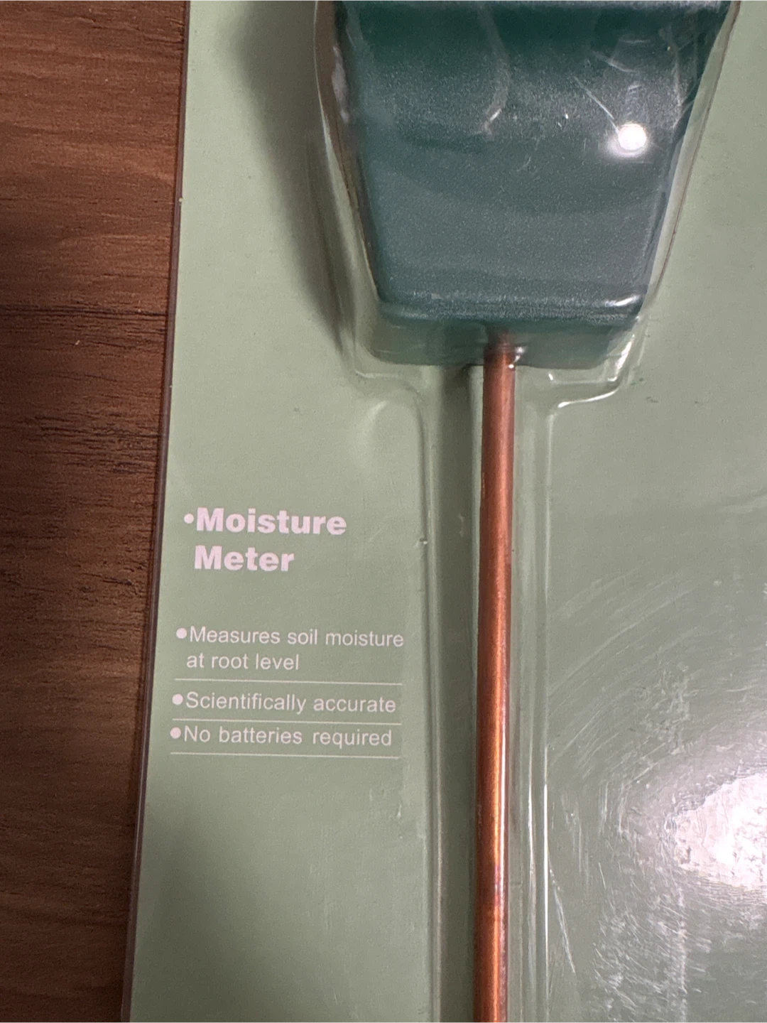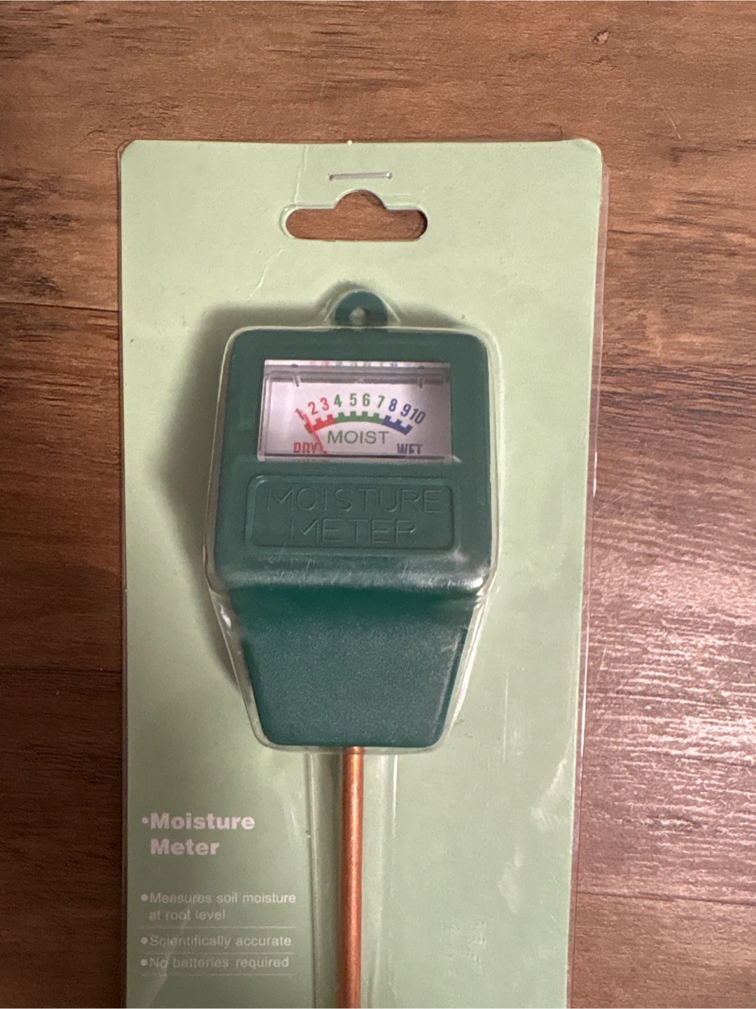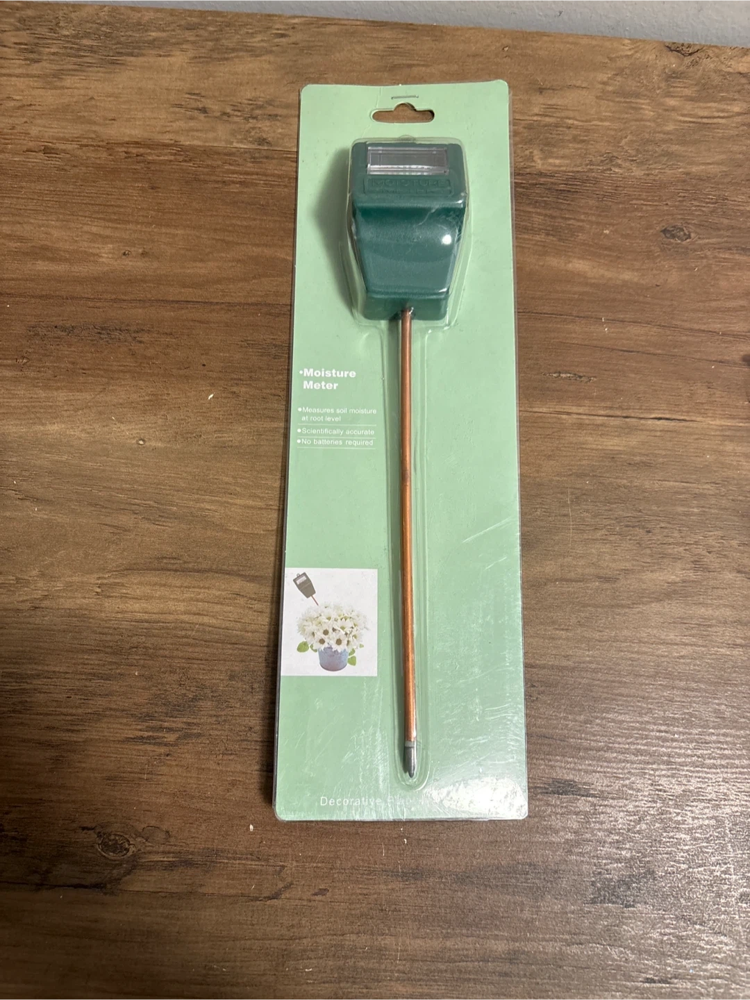 I'm selling a brand new moisture meter! It's still in its original packaging. This handy tool measures soil moisture right at the root level, and it's scientifically accurate. Best of all, no batteries are required!