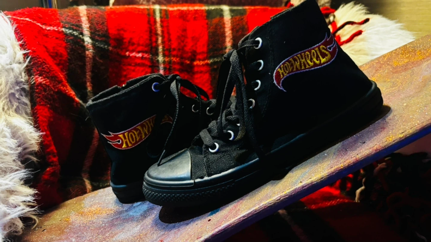 These black high-top sneakers feature the iconic Hot Wheels logo! They're in great shape and ready for a new adventure. Perfect for any young Hot Wheels fan!