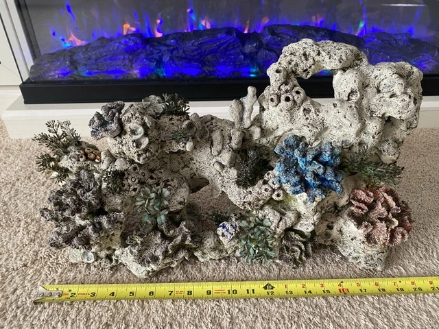 Add a touch of the ocean to your aquarium with this decorative rock ornament! It's in used condition, but still has plenty of life left to enhance your underwater world. The rock features a variety of textures and colours to create a visually appealing environment for your fish, making it a substantial addition to any tank. If the ad is up, it's available!