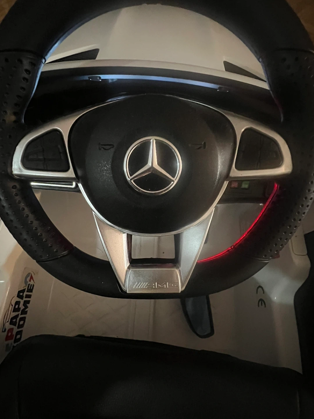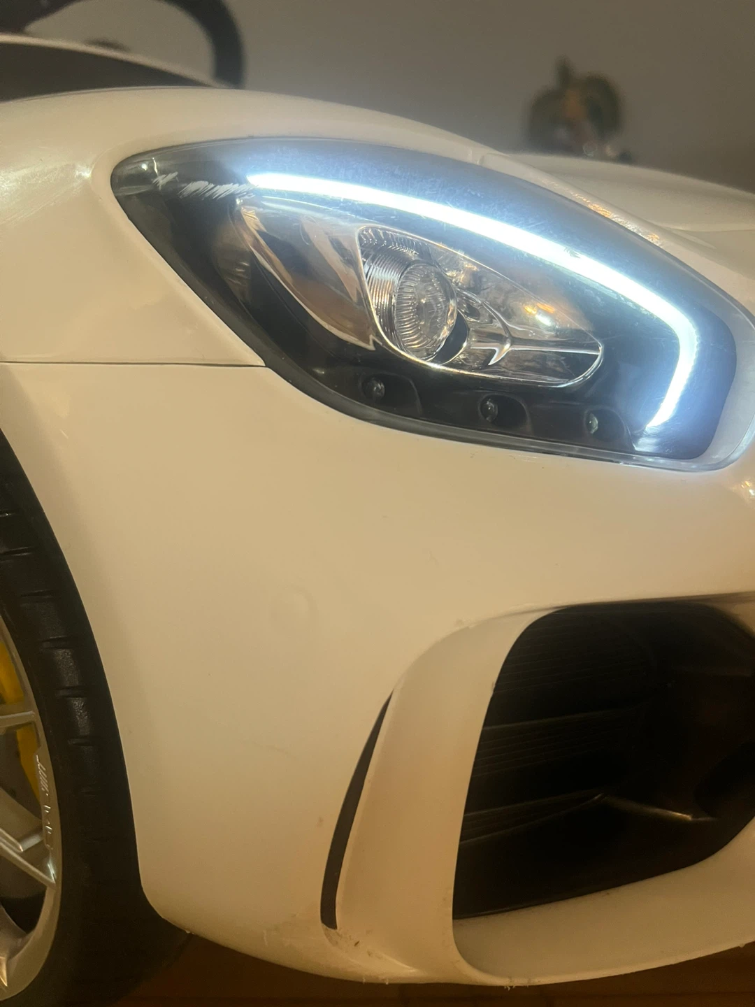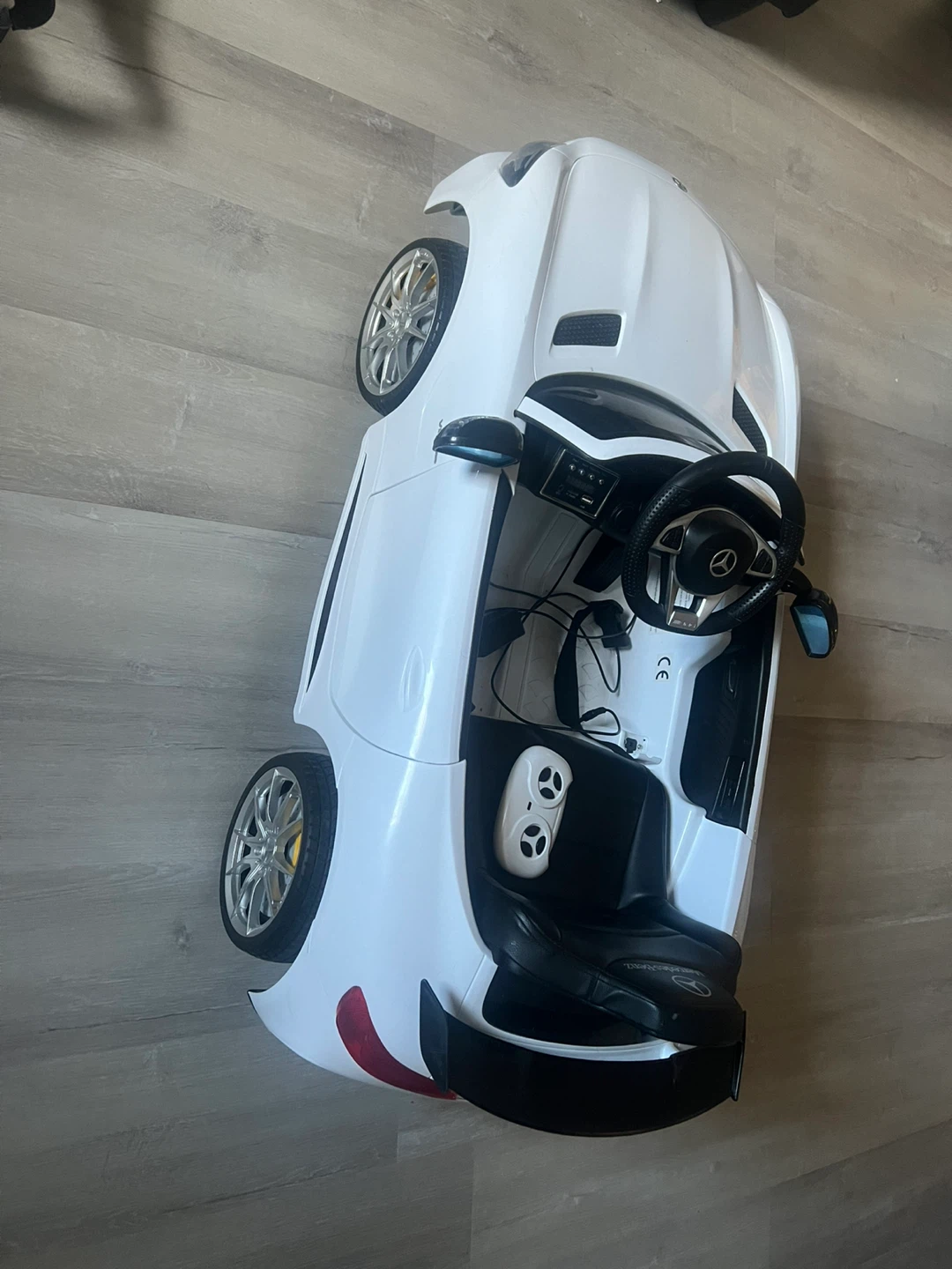 Selling a Mercedes-Benz AMG GT ride-on car for kids! It's in great shape and ready for a new little driver. The car is white and features the iconic Mercedes-Benz logo. Awesome kids ride-on car in mint condition, barely used. Includes remote control so adults can drive, or switch to child-drive mode with 3 speed settings. Comes with charger. Originally $500 — asking only $250. Perfect Christmas gift and ready to go! Perfect for cruising around the neighbourhood!