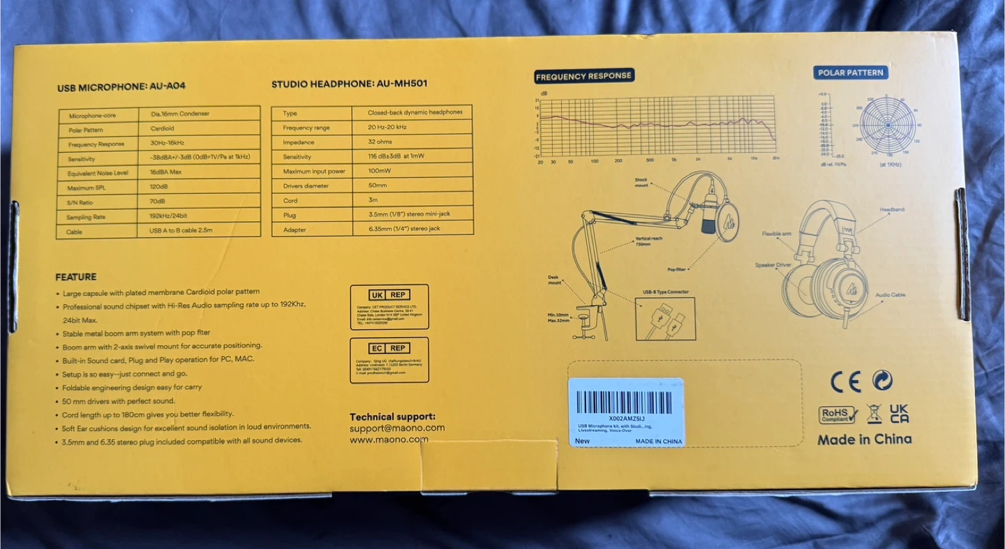 Selling a brand new Maono AU-A04H Podcasting Microphone & Studio Headphone Kit! It's still in the box and has never been used.