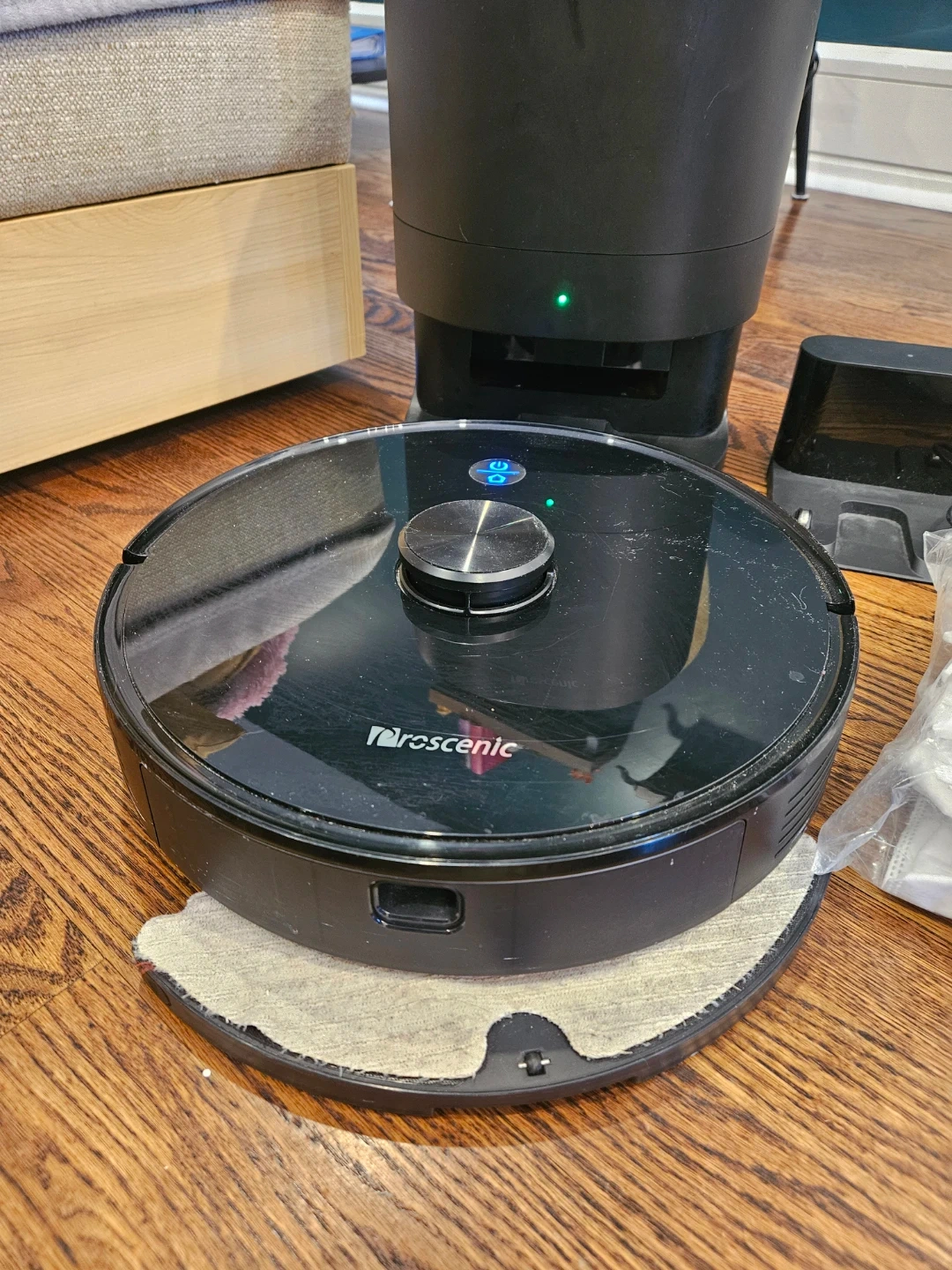 Selling a Robot vacuum cleaner. It comes with a regular charging base, water tank for mop, a dust bag charging base (when is finished it goes to empty the bag and then starts charging), as well as 8 replacement bags so you don't have to worry about getting more bags for a few months.
