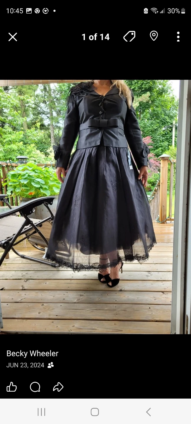 New with Tag - David Pallas French Haute Couture Designer of YPSY Beautiful black silk & lace skirt suit. The jacket features lovely hand applique ruffles and a flattering silhouette. The skirt has a French lace trim, crystal beads & sequins a flowing design. Perfect for a special occasion or a chic everyday look!