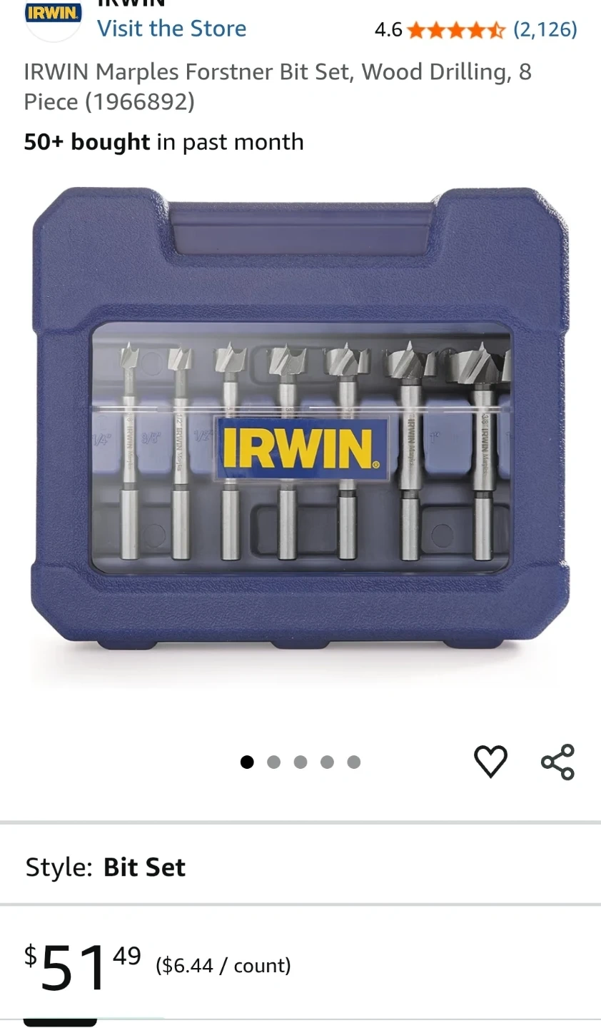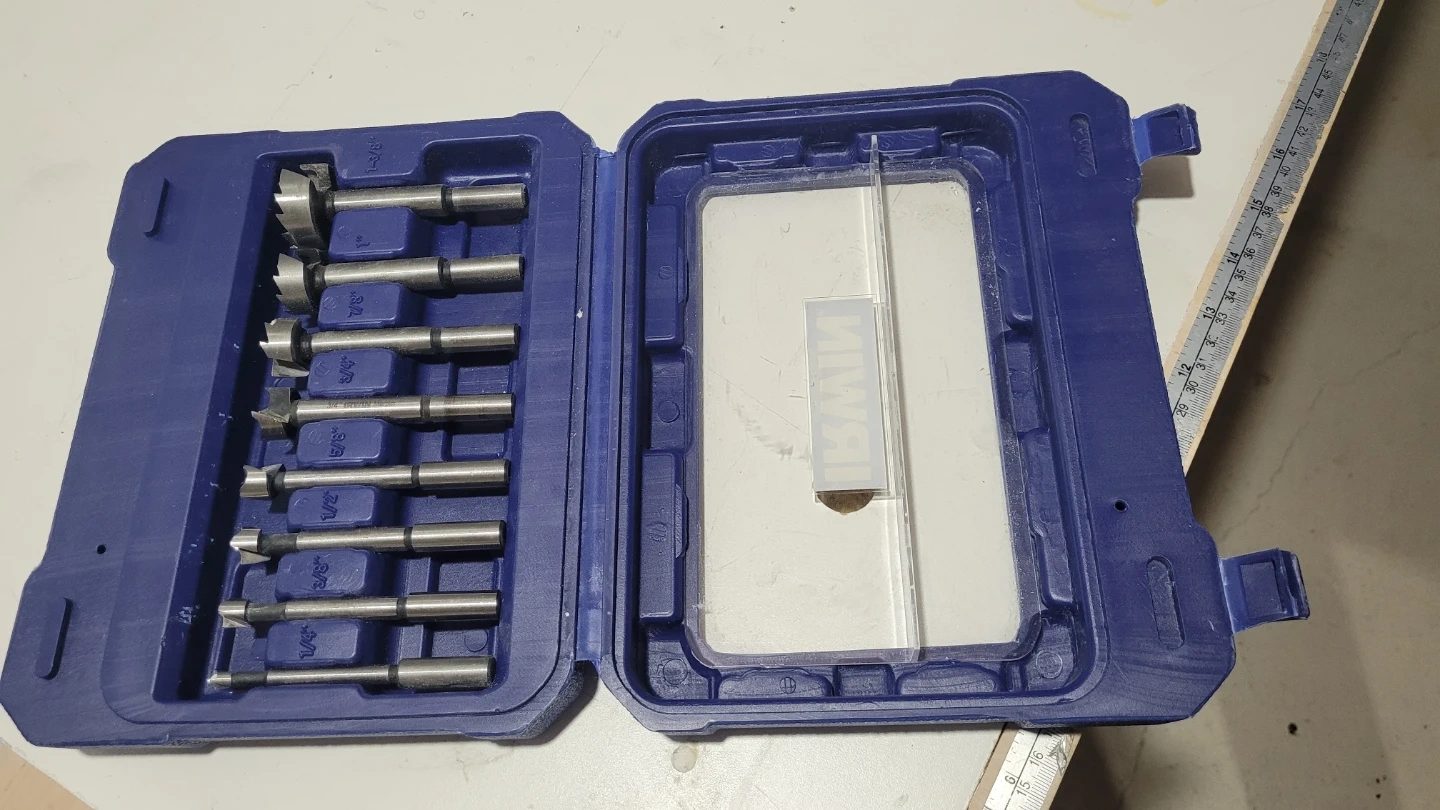 Selling an Irwin Forstner Drill Bit Set! It comes in a blue case to keep everything organized. This set is great for woodworking projects and creating clean, precise holes. All the bits are in good condition and ready for your next project