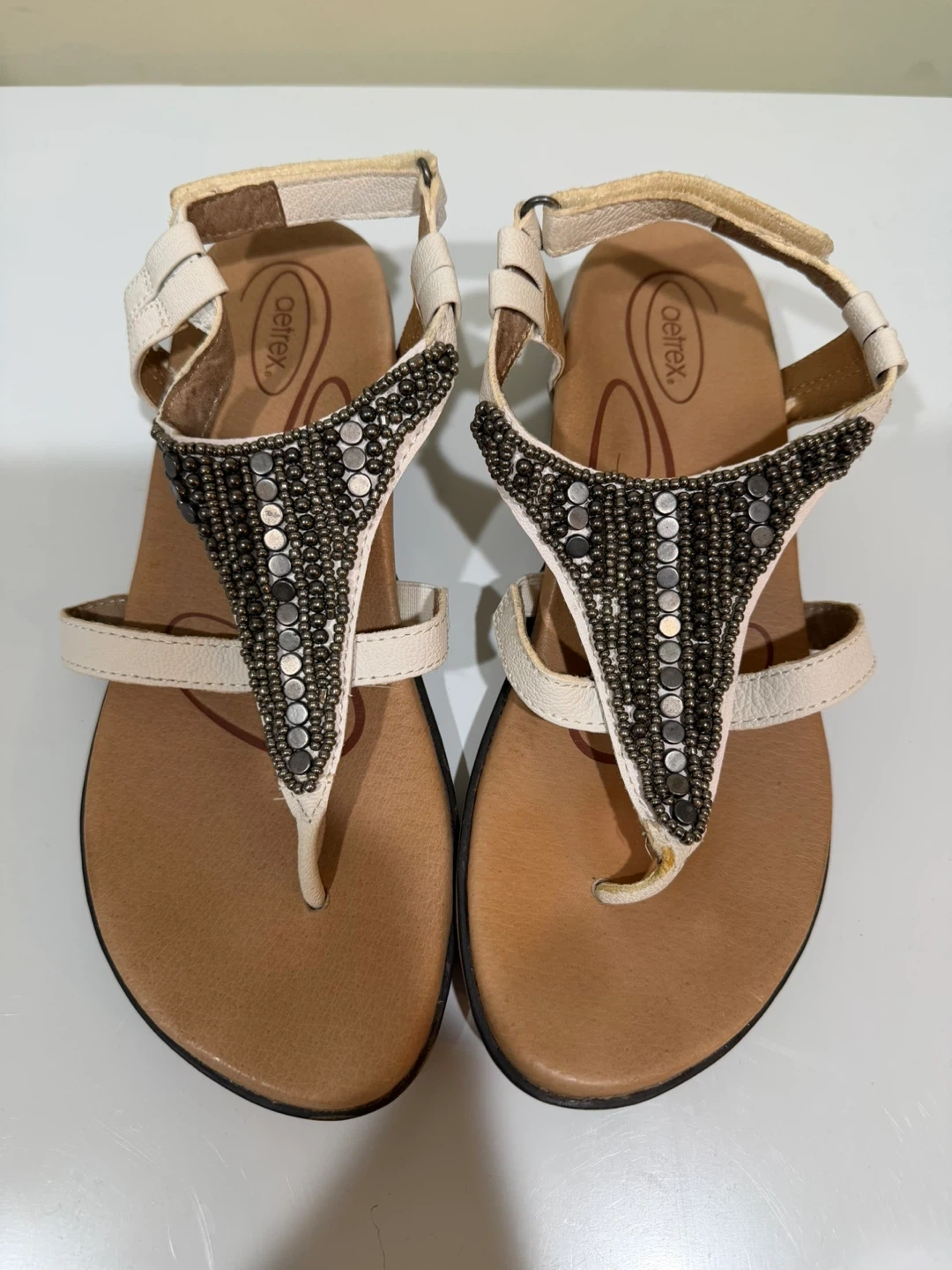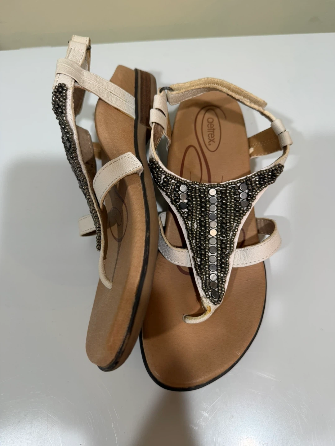 Buy & SellAetrex Beaded T-Strap Sandals - Size 8Aetrex Beaded T-Strap Sandals - Size 8$36Cute Aetrex sandals with a beaded T-strap design! They are a size 7 and in good condition. Perfect for summer!ConditionLike newSize37BrandAetrexWHERE TO MEETNear Concordia universityView MapSELLERverifiedMariaBorden Park711 review0 chats·0 favorites·3 viewsSEND CHAT TO SELLERHi Maria! I’m interested in your listing.Hi Maria! I’m interested in your listing.Get the Karrot app to chatSign In to chat
