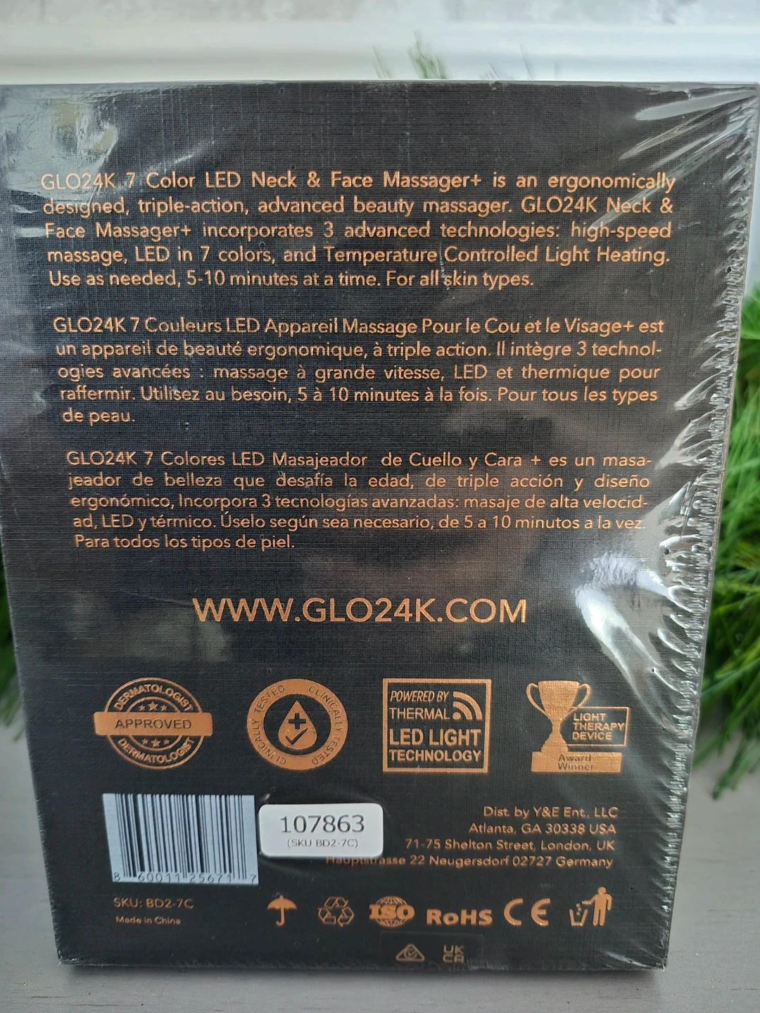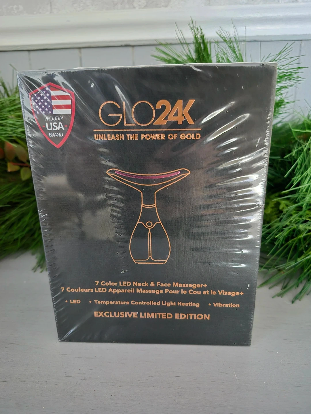 I'm selling a brand new GLO24K 7 Color LED Neck & Face Massager+! It's an ergonomically designed, triple-action, advanced beauty massager. This massager incorporates 3 advanced technologies: high-speed massage, LED in 7 colors, and Temperature Controlled Light Heating. It's for all skin types and comes in its original box!