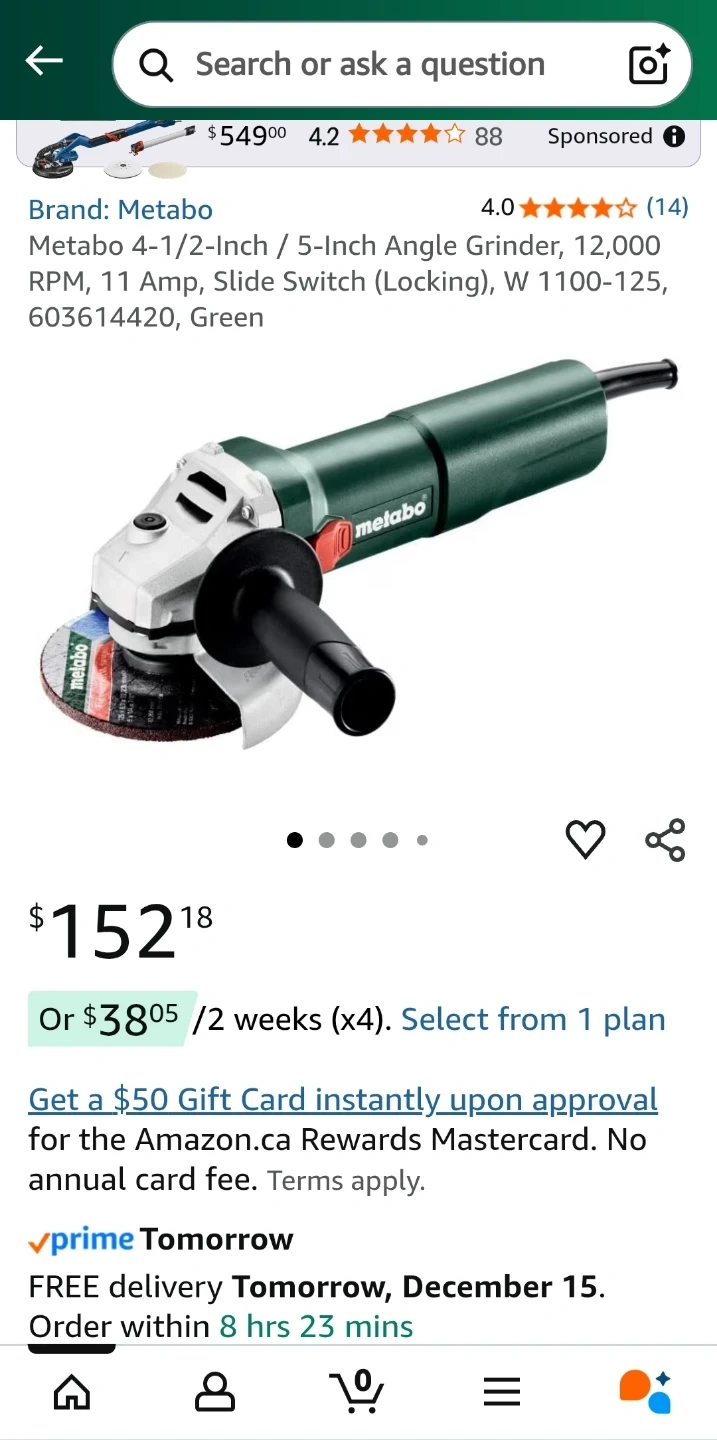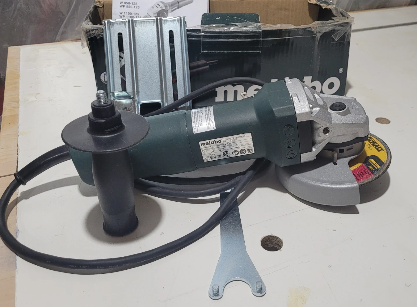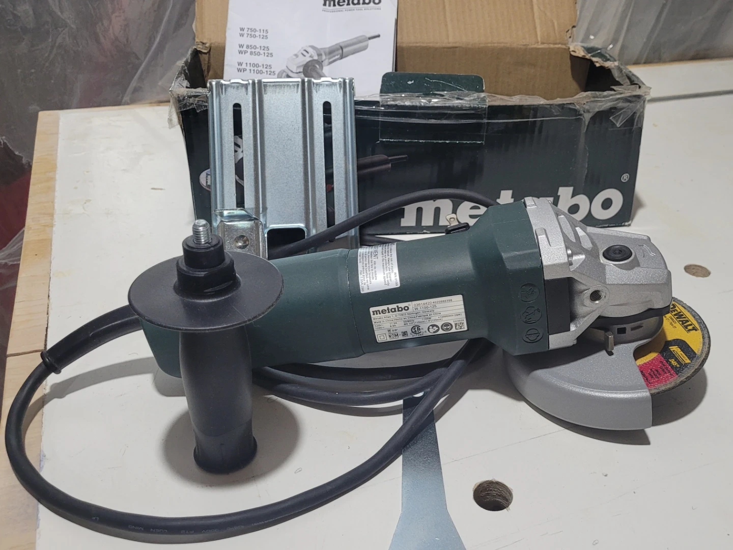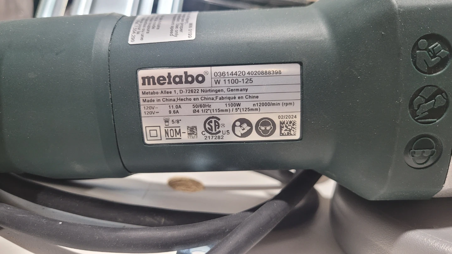 Selling a Metabo W 1100-125 angle grinder. It comes with the box and all included components. The expiry date is 2024 February 02