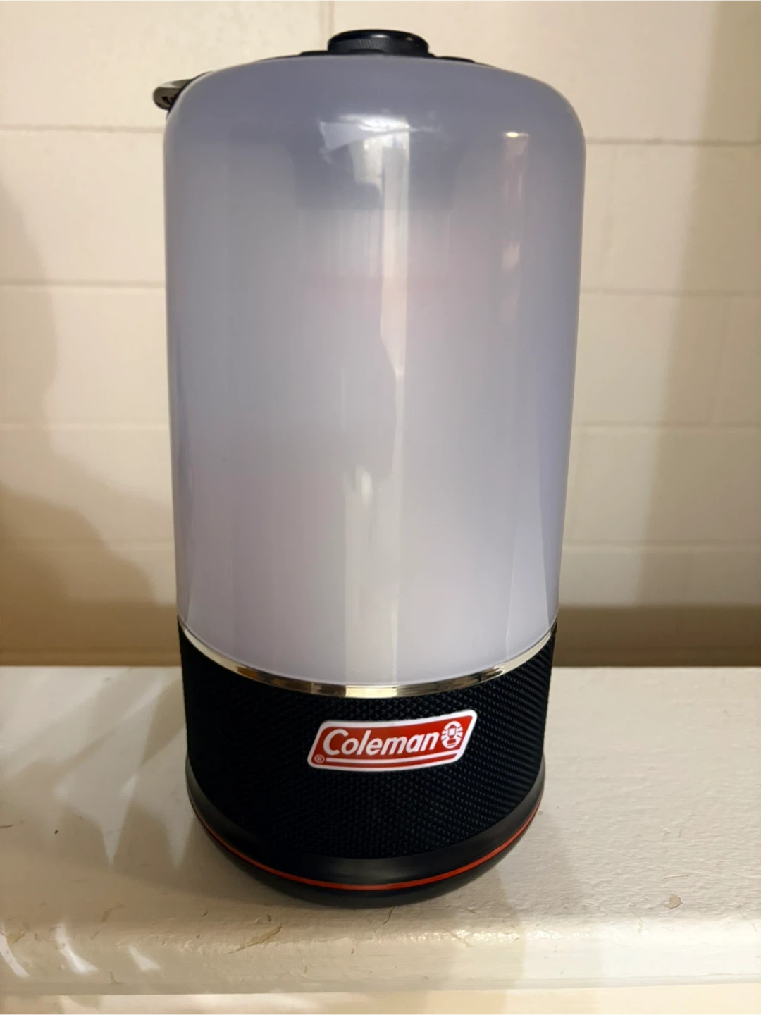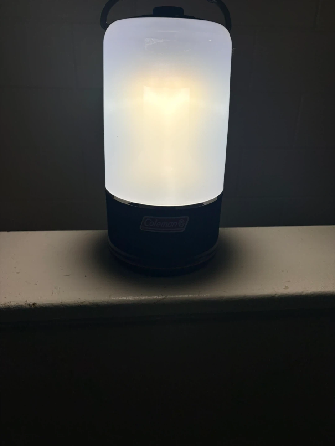 Selling a Coleman Bluetooth speaker lantern. It's in great condition and ready for your next camping trip or backyard gathering! It provides a nice ambient light and is easy to carry around.