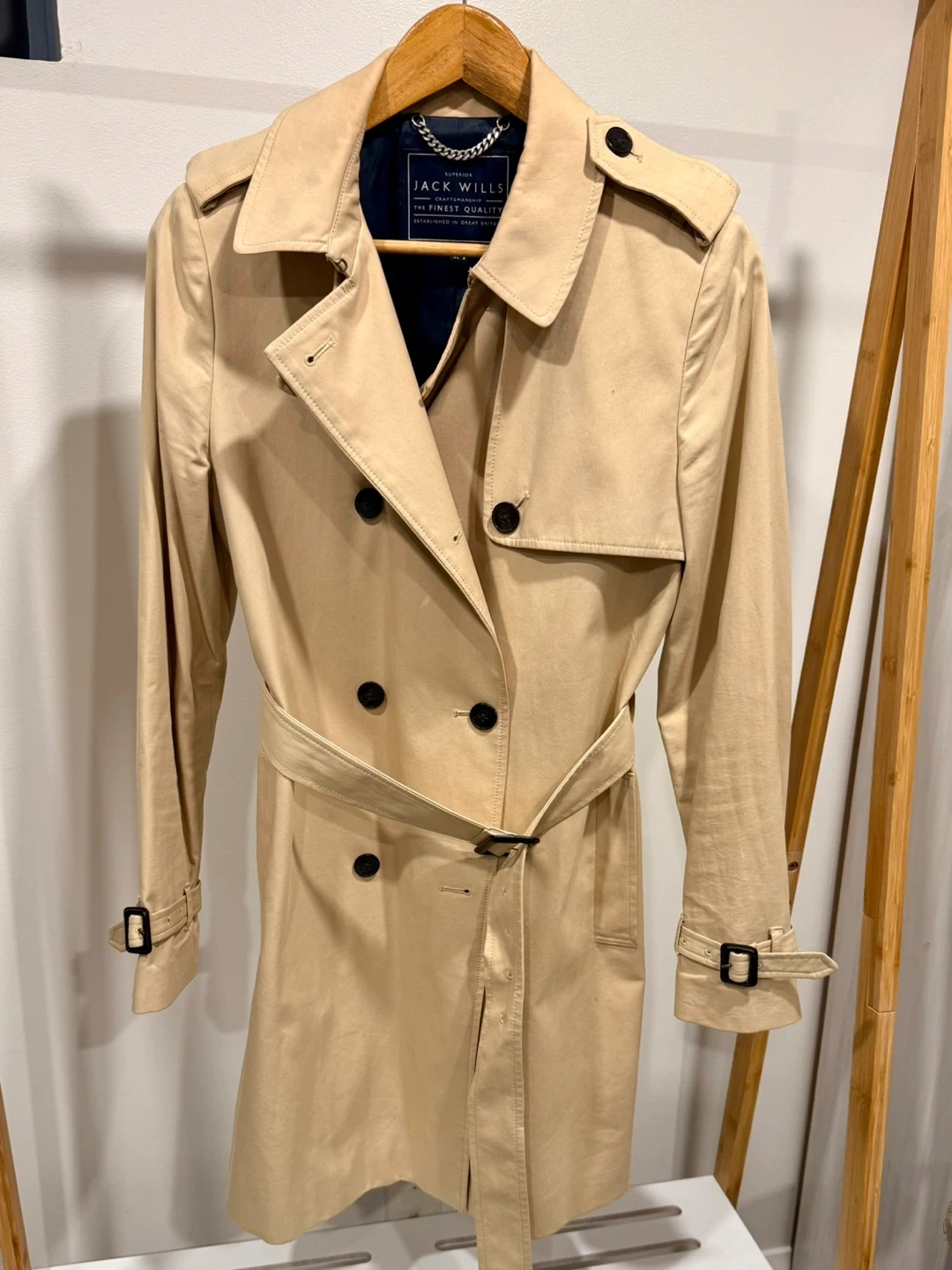 Selling a Jack Wills trench coat in great condition! It's a size US 8 (UK 12). This stylish coat is perfect for those transitional weather days. The classic design and neutral colour make it a versatile addition to any wardrobe