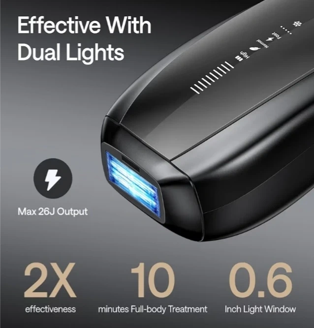 * IPL (Intense Pulsed Light) technology for effective hair reduction