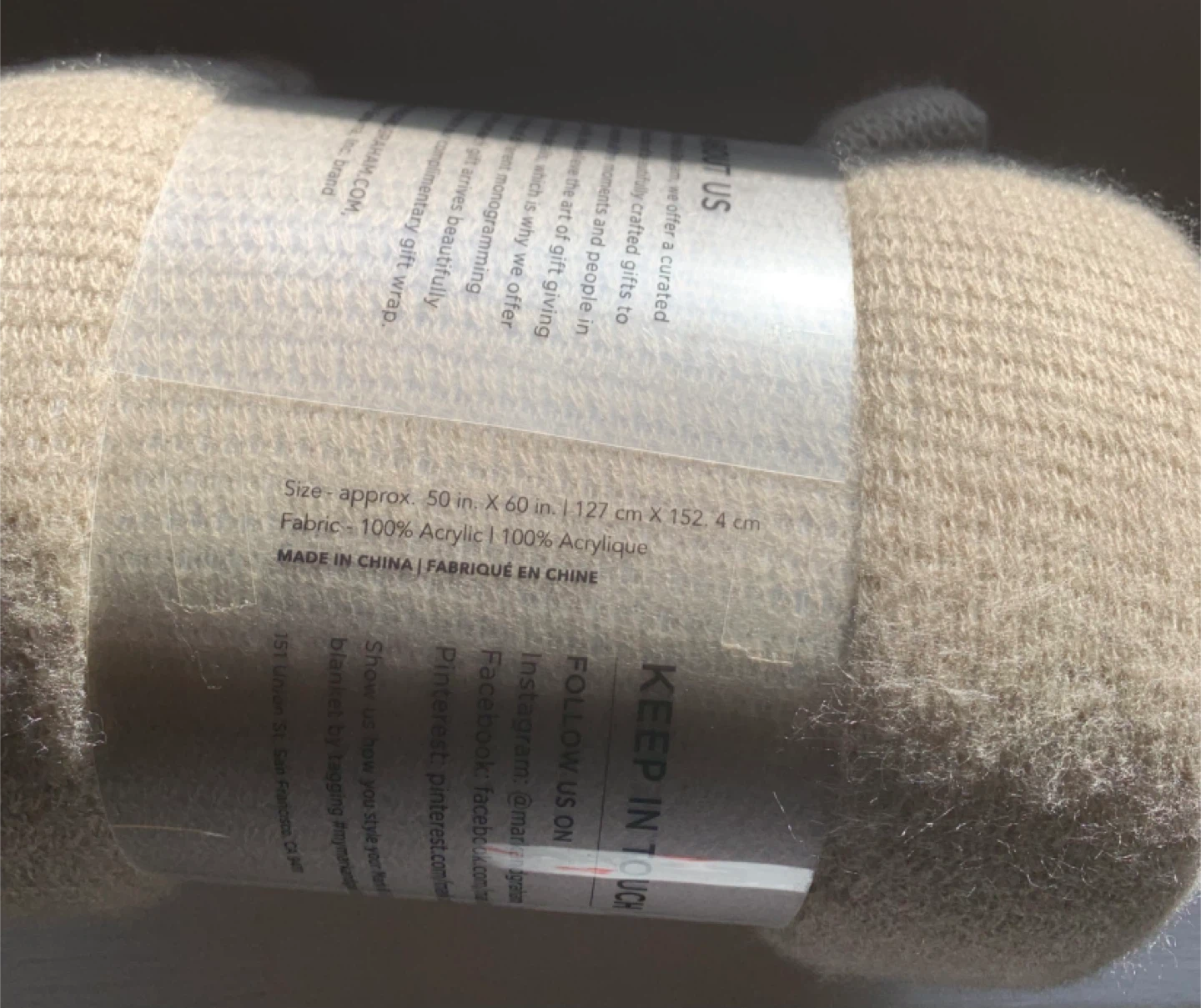 This is a brand new Mark & Graham throw blanket! It's made of 100% acrylic fabric and measures approximately 50 inches by 60 inches (127 cm x 152.4 cm). It comes in its original packaging. Retails for $49US. *** Pick up at 385 Osler Street. ***Cash only.