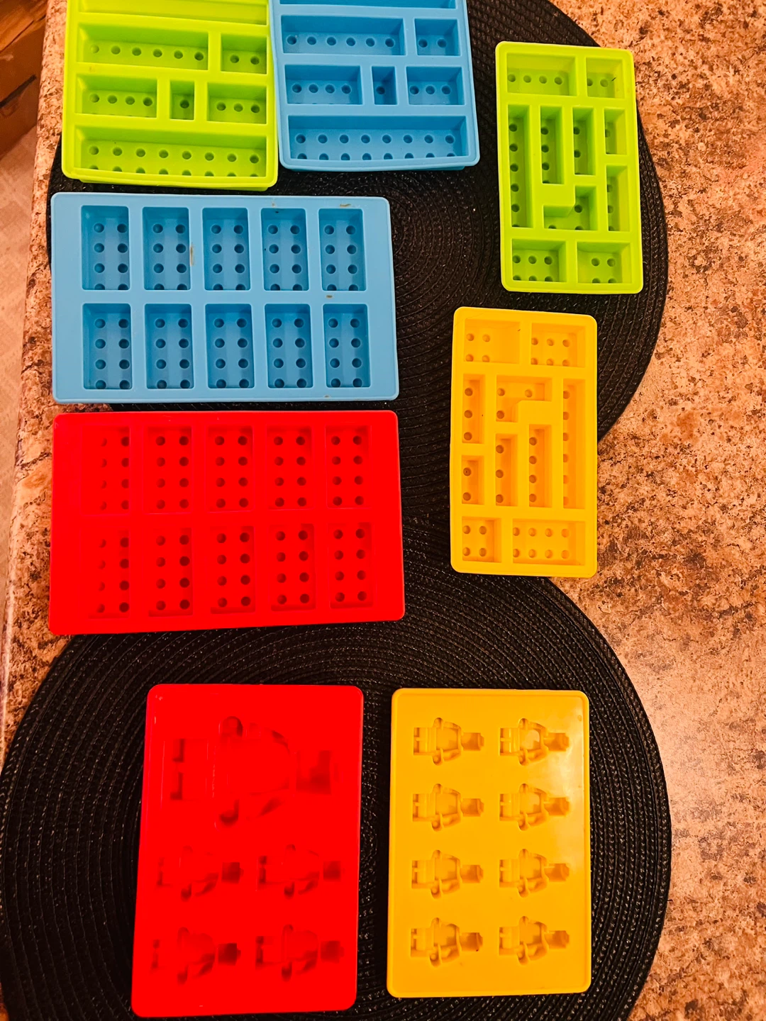 Selling a set of silicone Lego molds! They come in a variety of colours including red, blue, yellow, and green. Perfect for making Lego-shaped treats or crafts! Like homemade gummies or chocolates