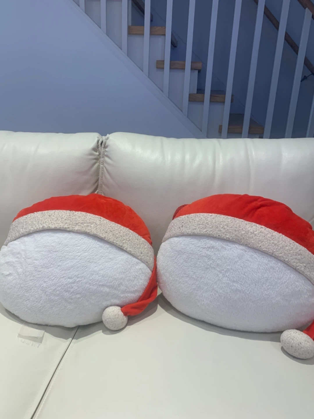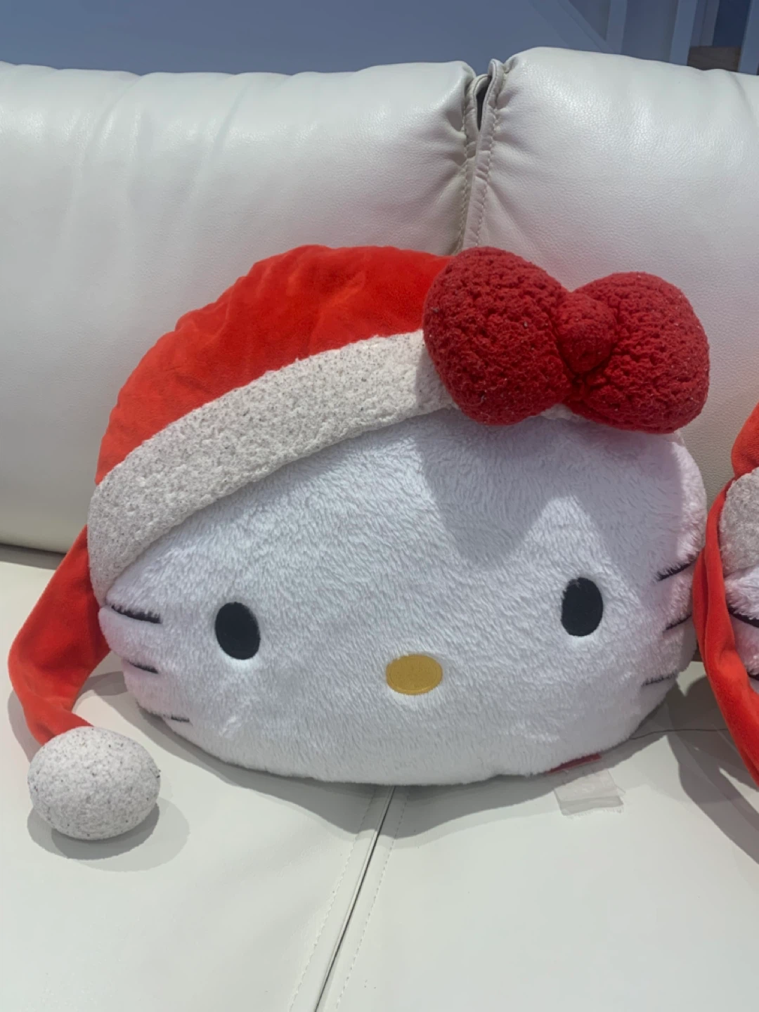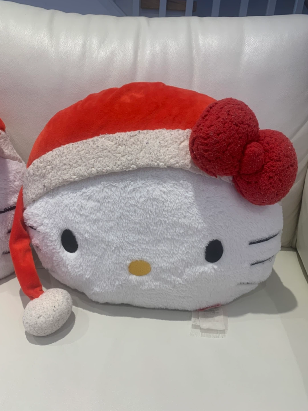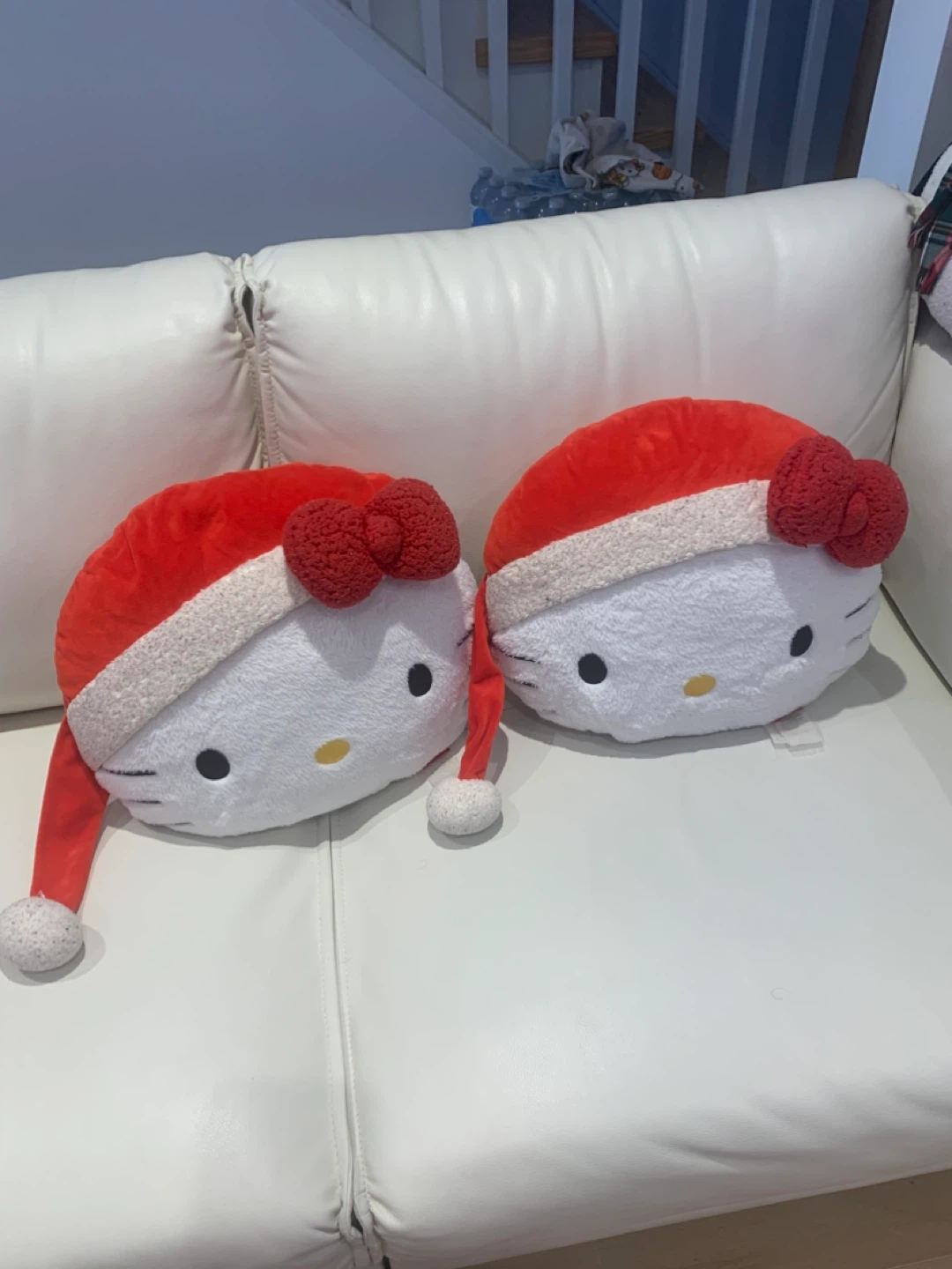 These Hello Kitty plush pillows are super cute and festive! They're wearing Santa hats and would be perfect for adding a touch of holiday cheer to any room. They are soft and in great condition!
