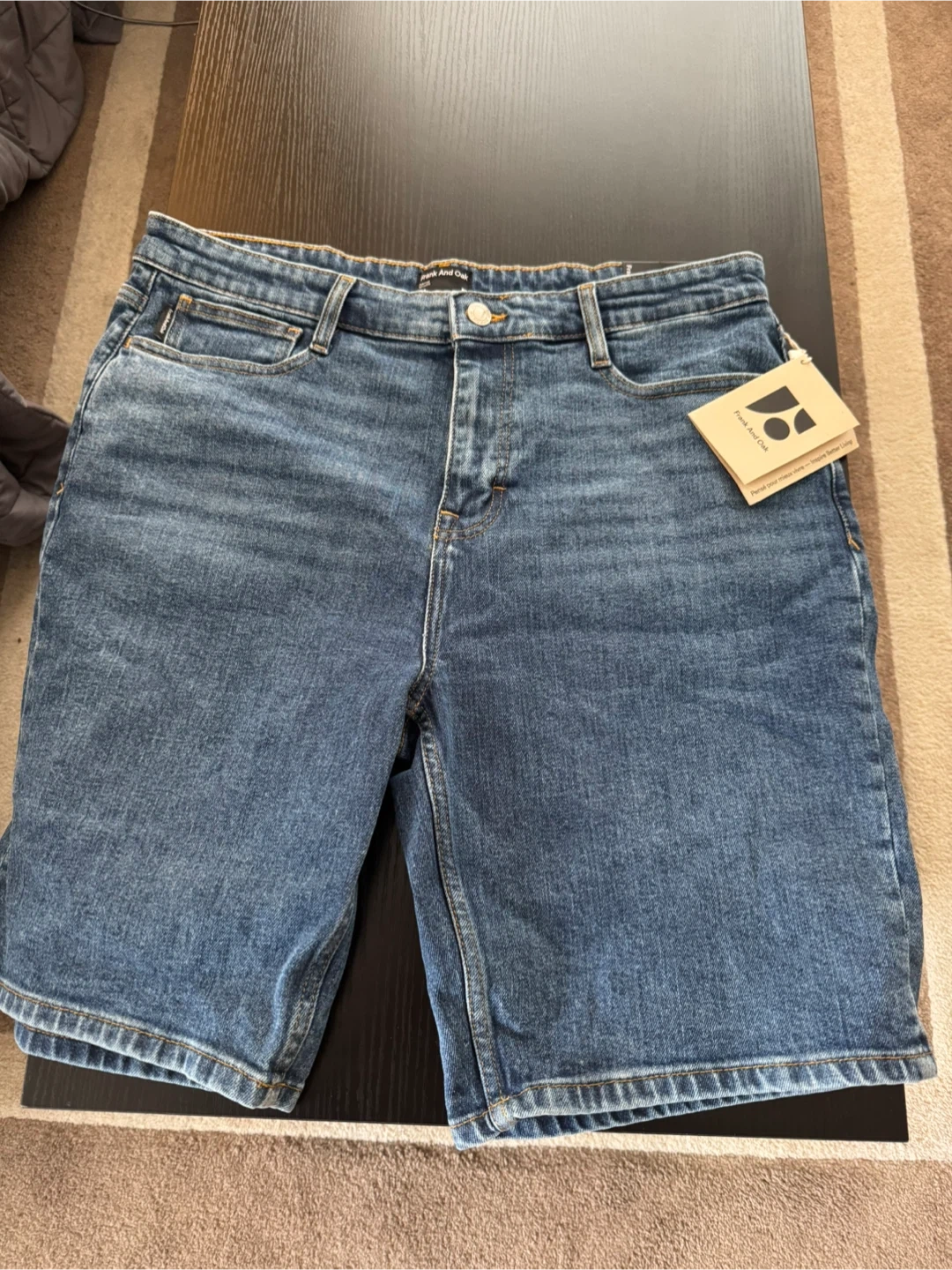 Selling a pair of Frank And Oak denim shorts in size 34. They are a straight fit and in great condition. The original price was $98.50