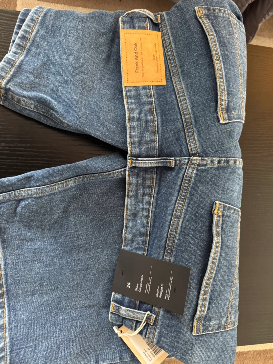 Selling a pair of Frank And Oak denim shorts in size 34. They are a straight fit and in great condition. The original price was $98.50