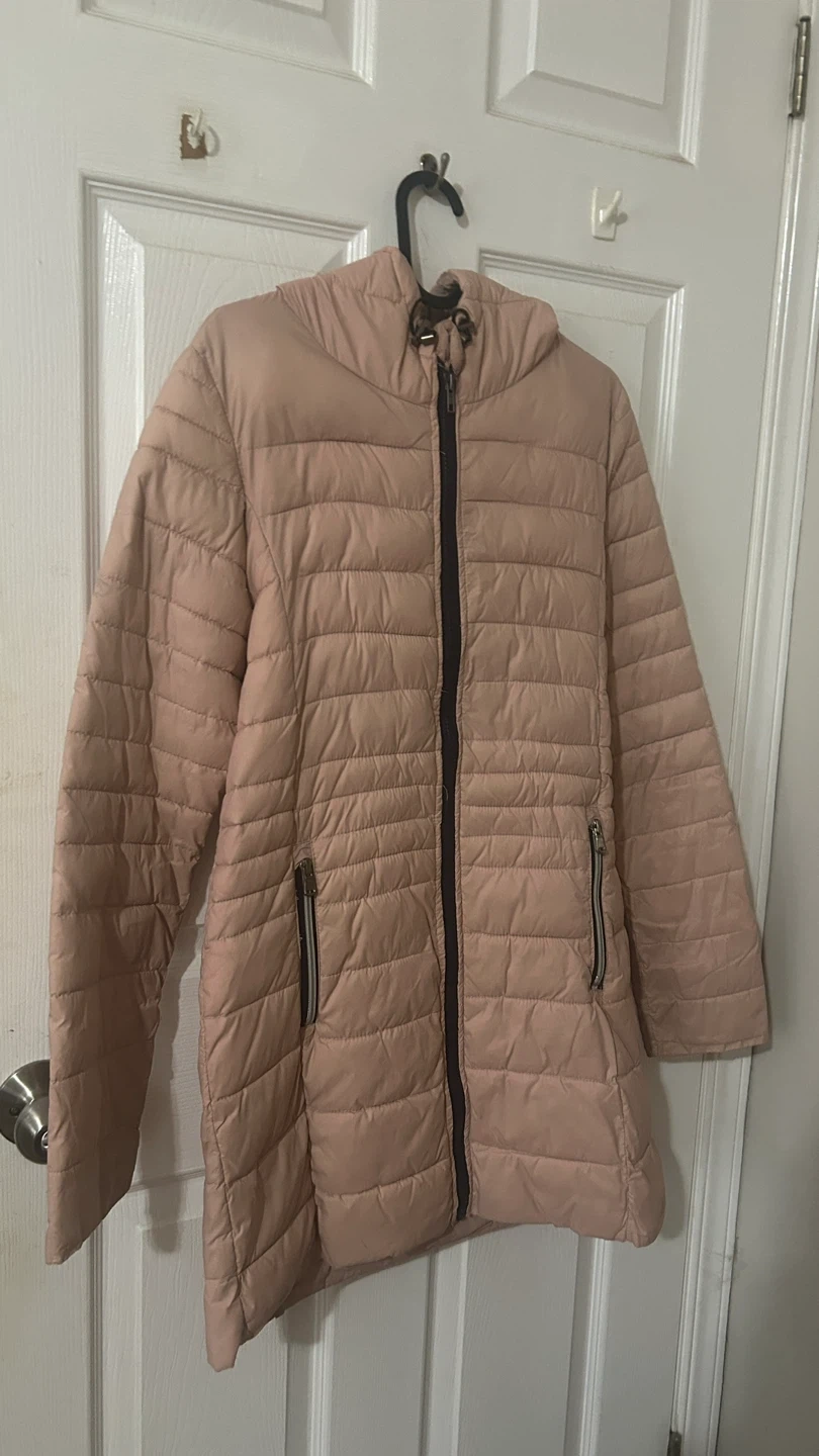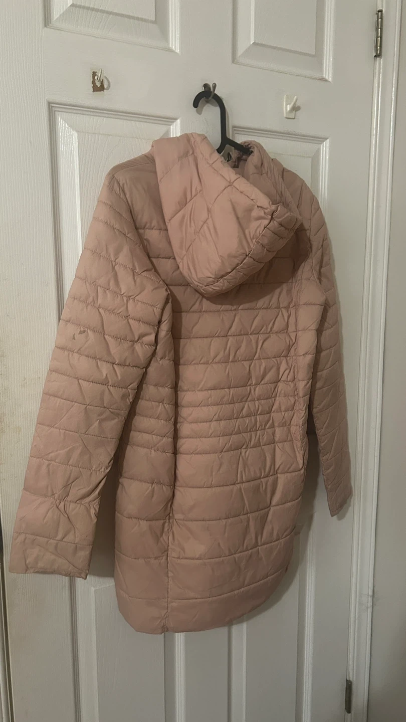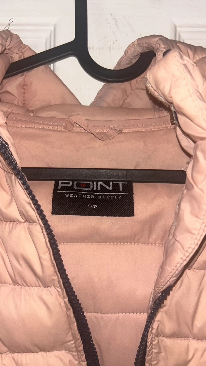Selling a Point Weather Supply puffer jacket in size small. It's a lovely light pink colour, perfect for spring or fall weather. It's in great condition and ready for a new owner!