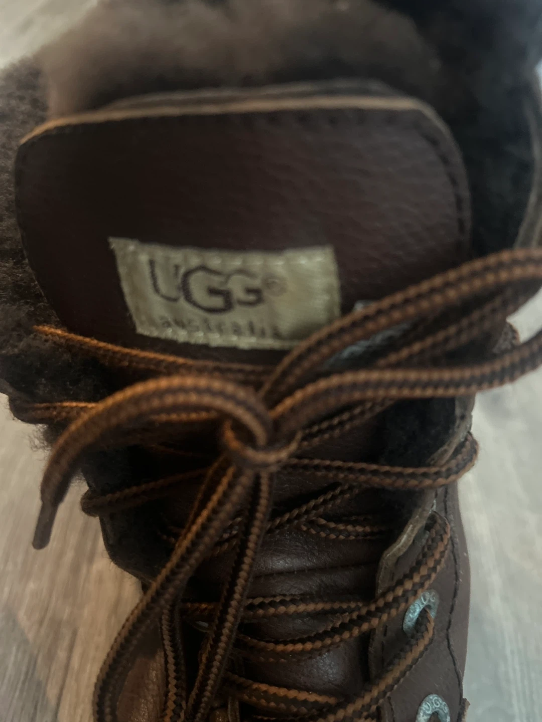 Selling a pair of UGG Australia boots in brown leather. They feature a Vibram sole for great traction. Size women 6.