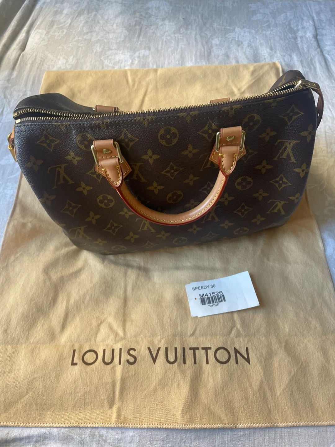 Selling a Louis Vuitton Speedy 30, model number M41526. It's in good condition and comes with the original dust bag. The date code is SD0192.