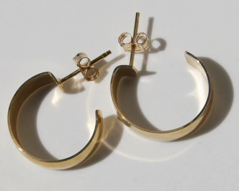 Selling a pair of simple gold plated silver .925 hoop earrings! They have a minimalist design and are perfect for everyday wear. Stamped with 'M 925'.