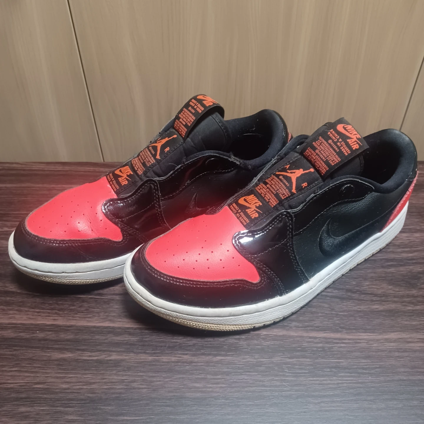 Selling a pair of women's Air Jordan 1 Low sneakers in a classic black and red/pink colourway size 9! They are in used condition, as shown in the photos, but still have plenty of life left. Great for everyday wear or for adding to your sneaker collection