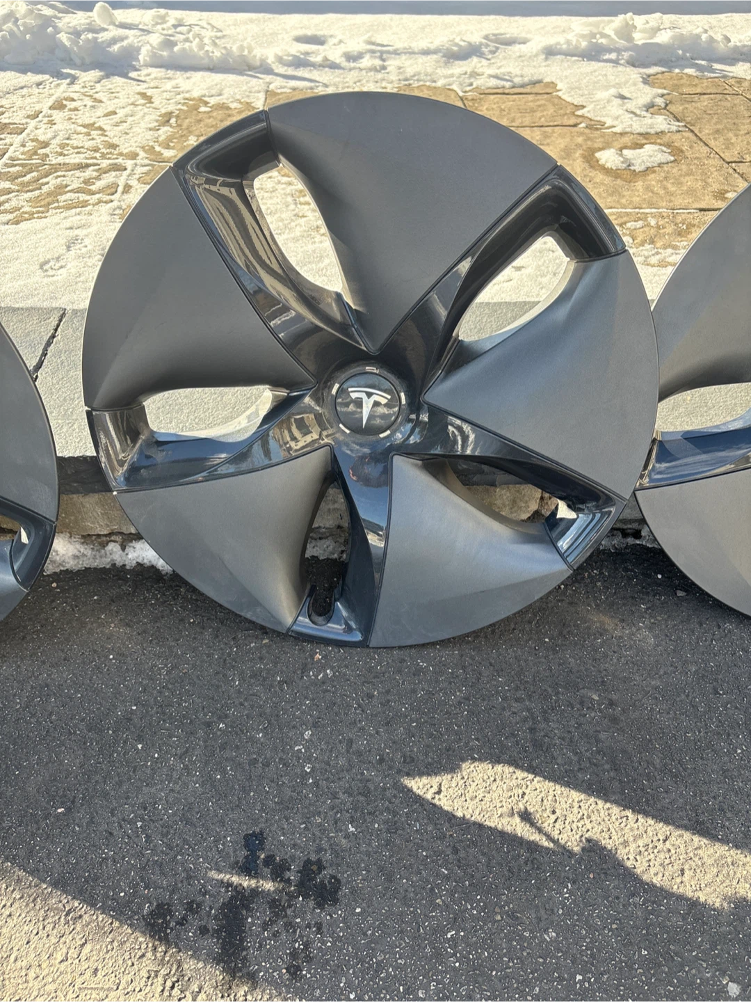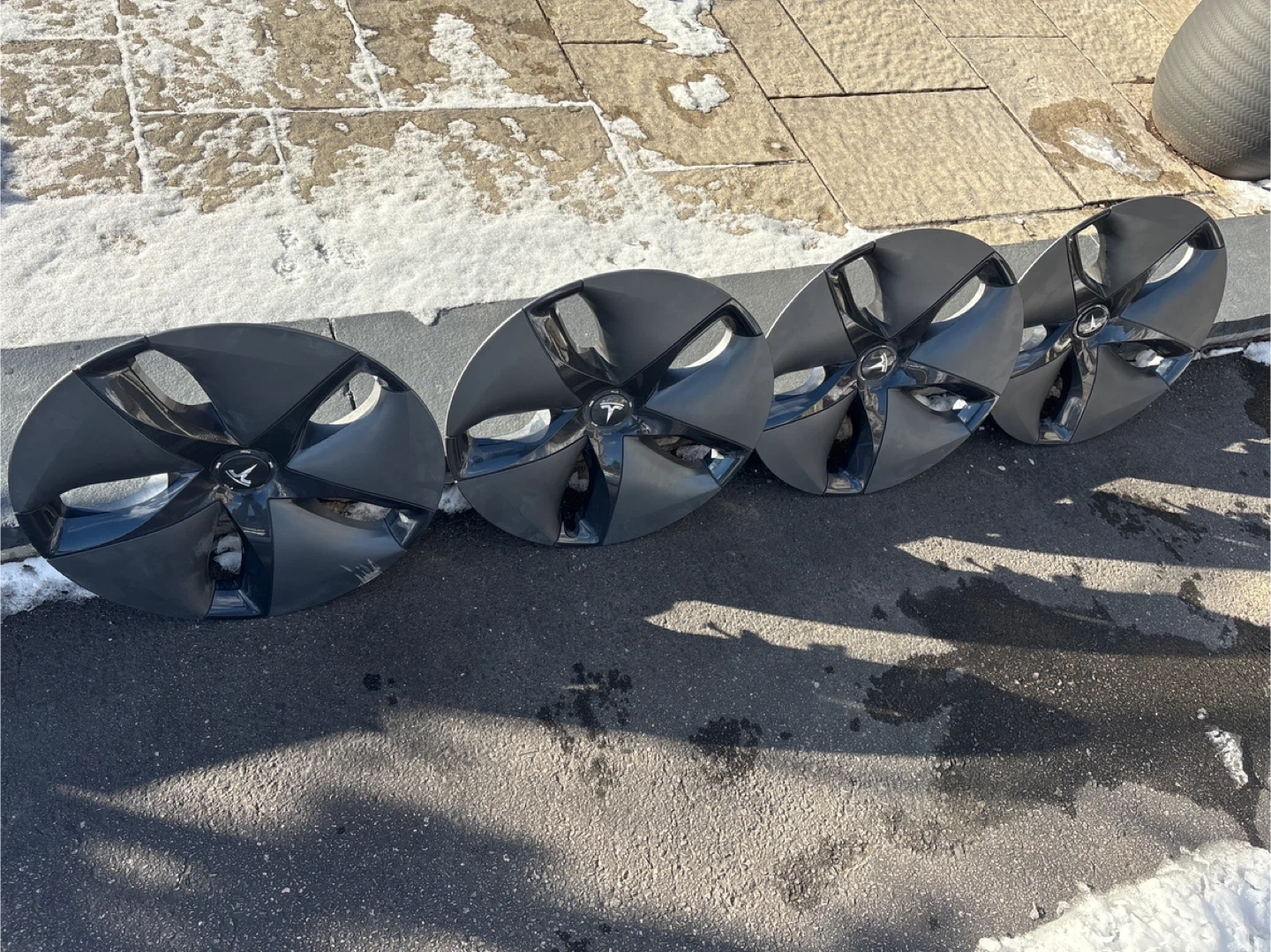 Selling a set of four Tesla Model 3 wheel covers. They're in great shape and ready to give your car a fresh look! One has a scratch; each one can be sold separatelly as well.