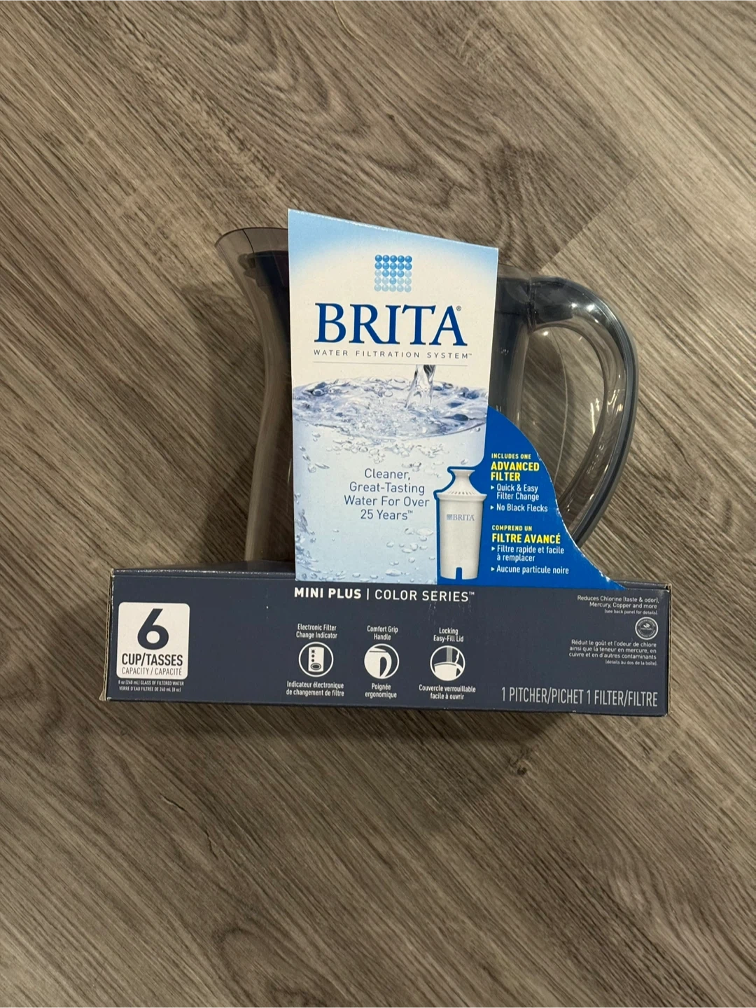 Selling a Brita water filtration pitcher from the Mini Plus Color Series! It has a 6-cup capacity and includes one advanced filter. It's designed for cleaner, great-tasting water. Brand new, sealed packaging.