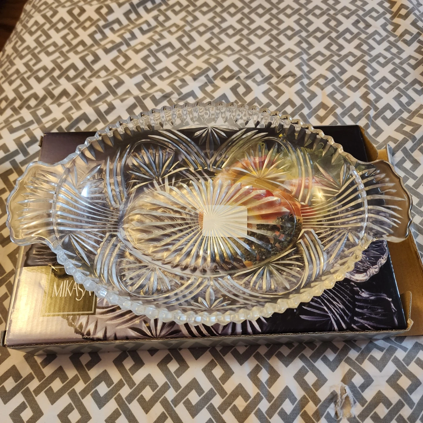Selling a Mikasa Royal Suite hostess server, model number QQ228/349. It's in great condition and comes with the original box. Perfect for serving appetizers or desserts at your next gathering!