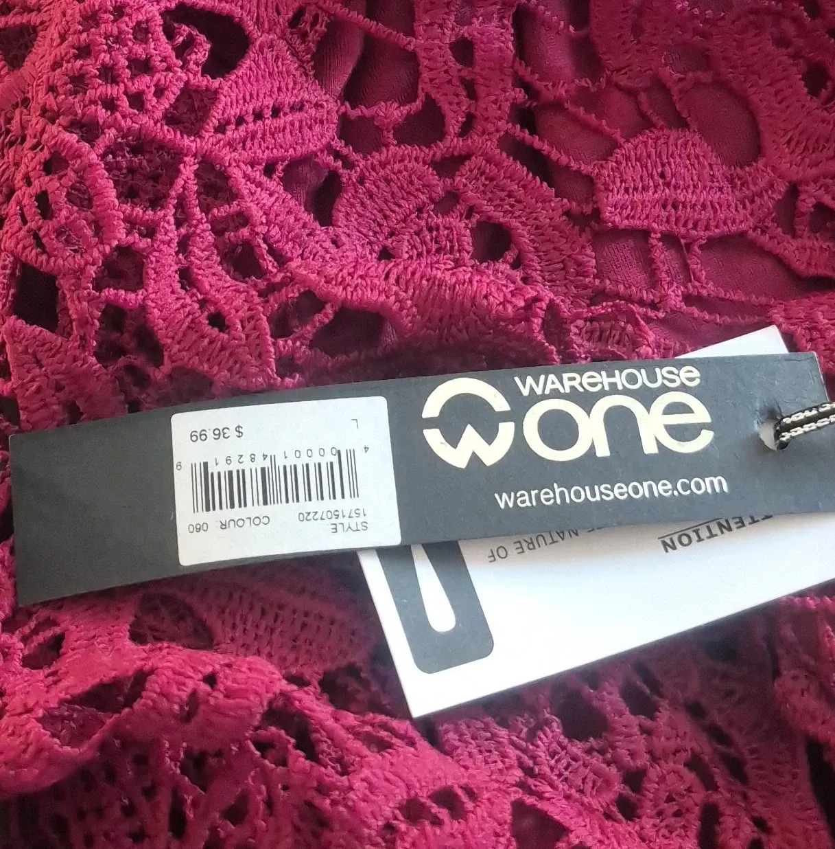 This Warehouse One top is a lovely addition to any wardrobe! It features a beautiful lace design and a comfortable fit. The size is Large and the colour is a rich, dark pink. Originally bought for $36.99