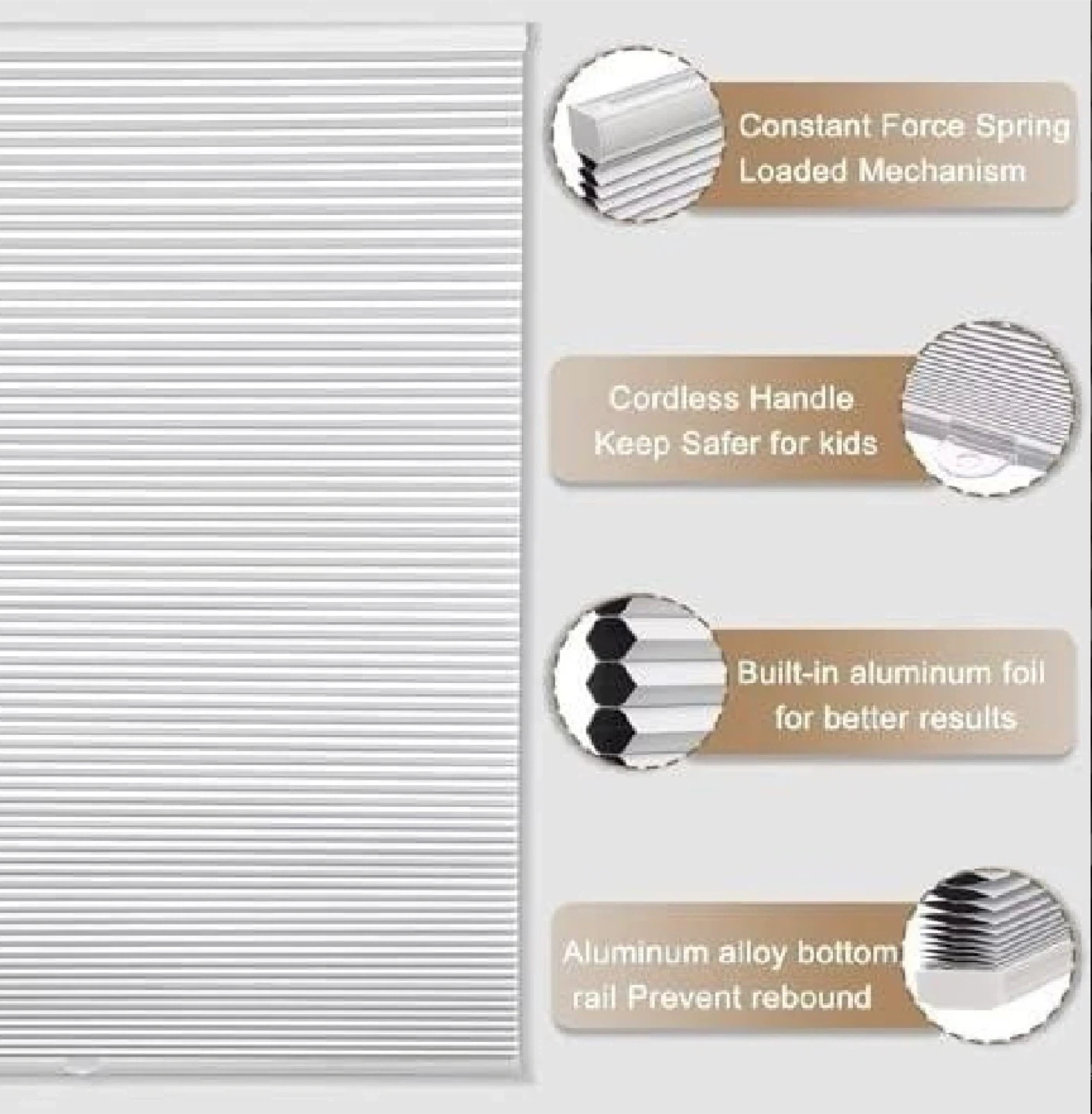 Brighten your space with these brand new MYshade cellular cordless blinds, still in their original packaging! These 25”x64” blinds offer a sleek, modern look and are incredibly easy to install. The cordless design ensures safety for children and pets, while the cellular structure provides excellent insulation, keeping your home comfortable year-round. They are easy to install with the included hardware, offering privacy and light control. I think these would look great in your house.