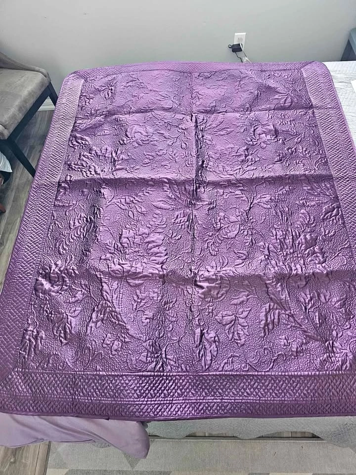 Beautiful deep purple plum quilted satin throw blanket. Like new. Only ever used as decor, not as bedding. Pet free, smoke free home.