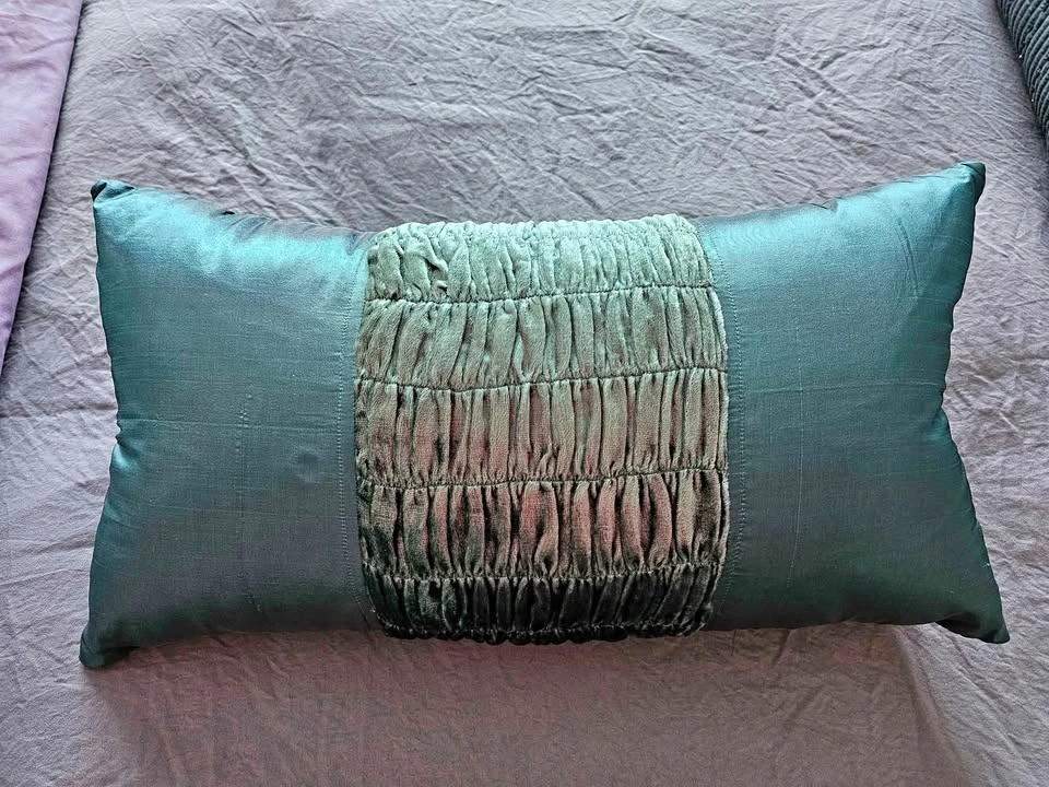 Teal 20" x 10" throw pillow. Like new. Only ever used as decor, not as bedding. Pet free, smoke free home.
