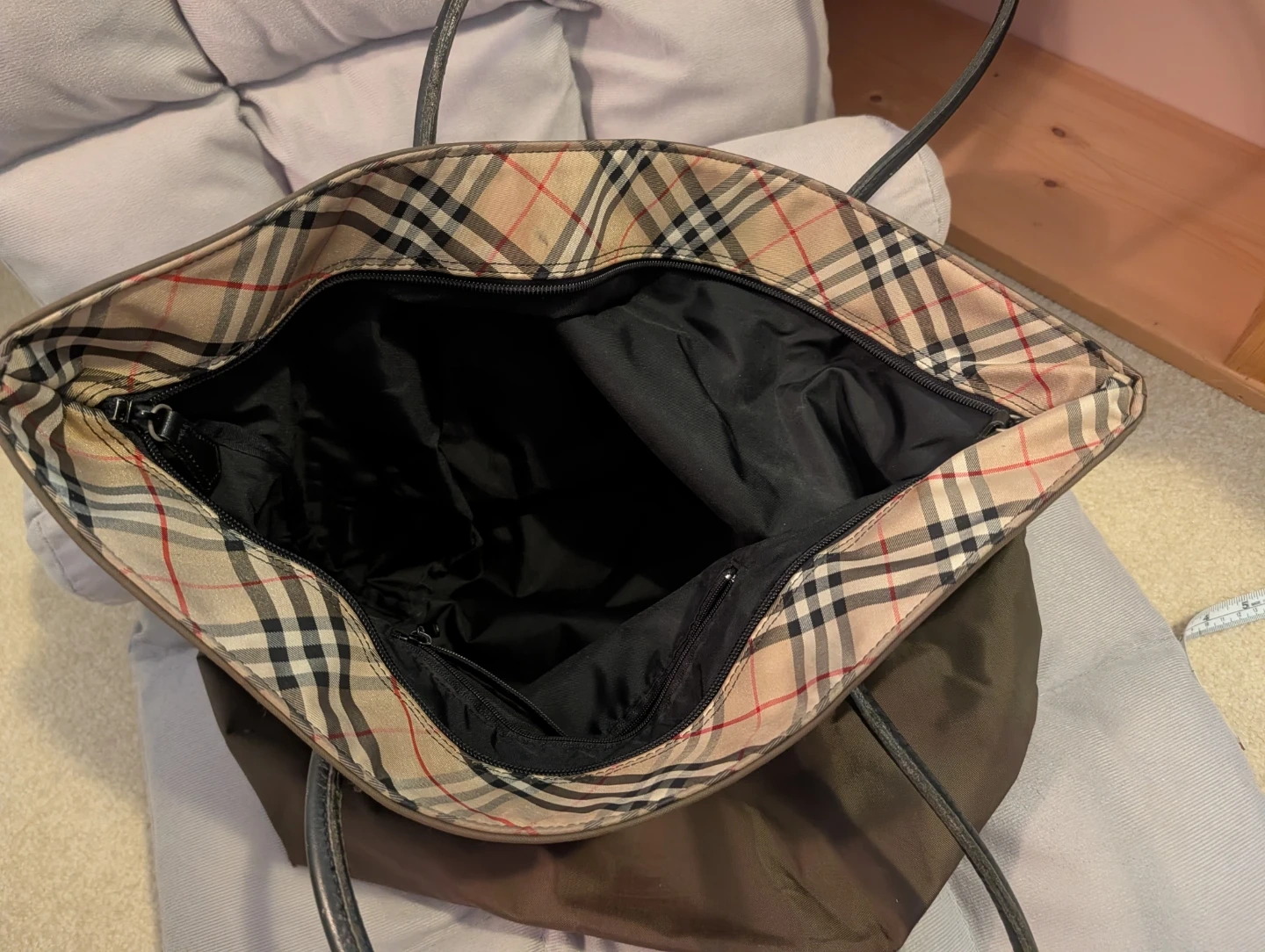 Classic Burberry Blue Label tote bag in good condition! The iconic plaid pattern is featured on the sides and interior. Brown exterior. Perfect for everyday use!