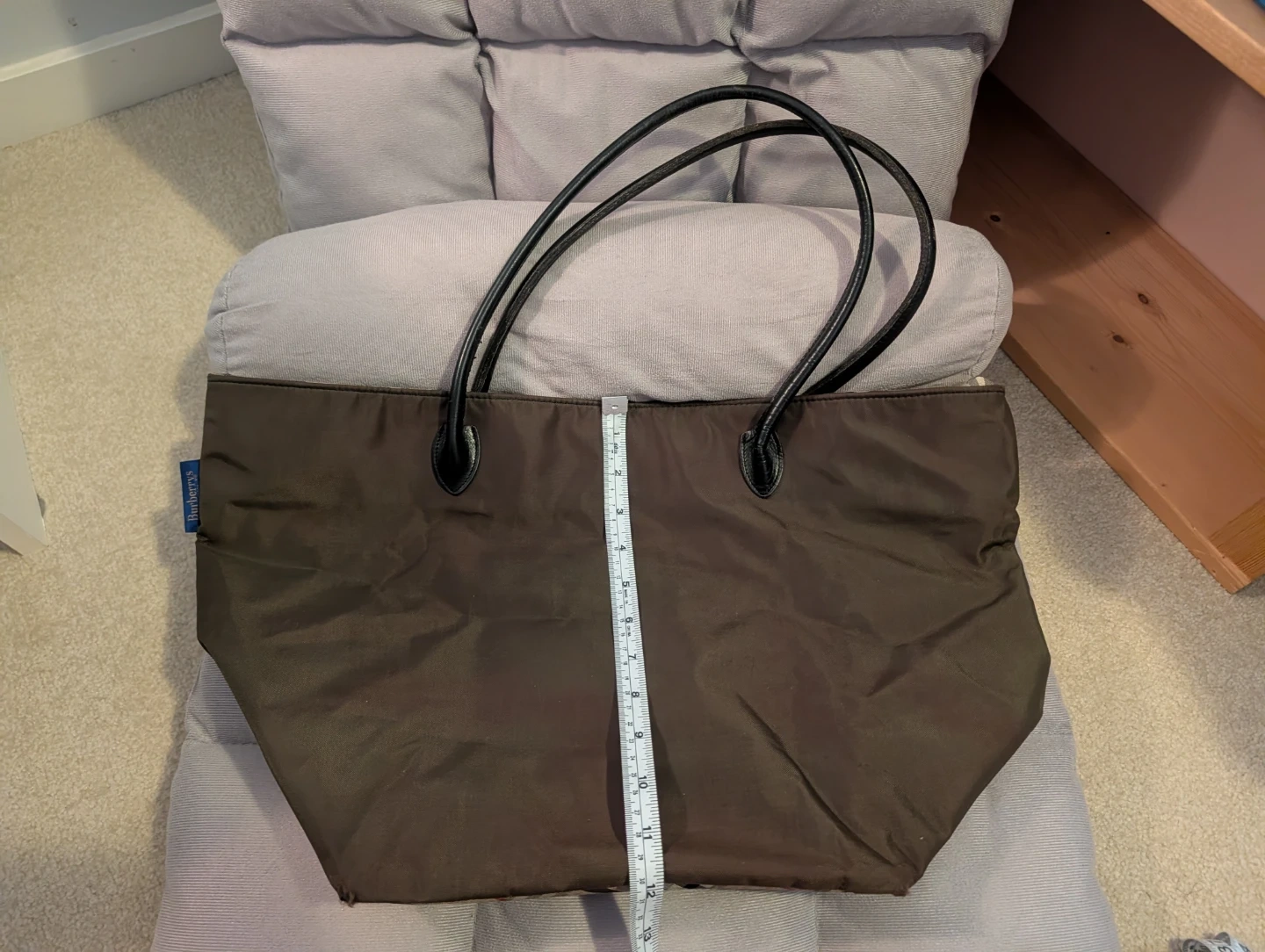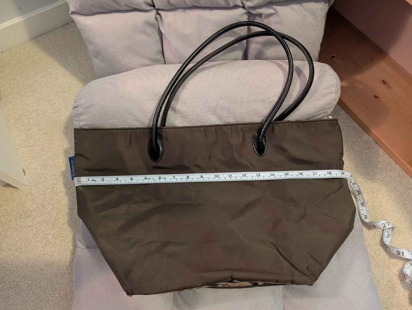 Light wear in bottom. 19" x 12". Sturdy straps with no cracks. Perfect for last minute gifting.