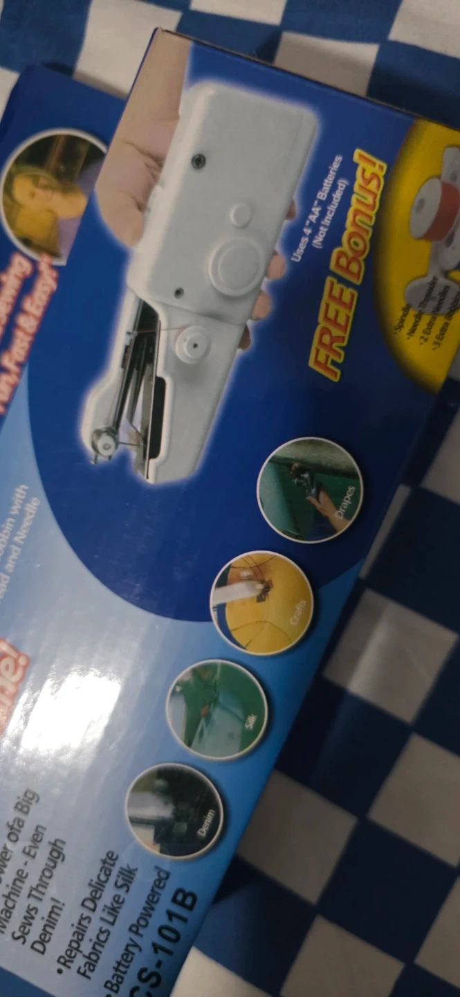 Selling a handy handheld sewing machine! It's super easy to operate and has an excellent design. Perfect for quick repairs on denim and delicate fabrics like silk. It's battery powered (uses 4 'AA' batteries, not included). Great for on-the-go sewing!