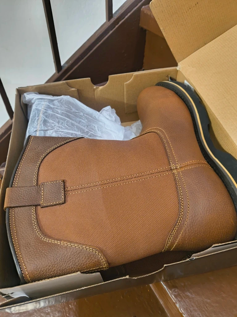 Selling a pair of Brahma work boots! They come with the original box and feature steel toe protection. These boots are oil resistant and have a Goodyear welt construction. Perfect for tough jobs!