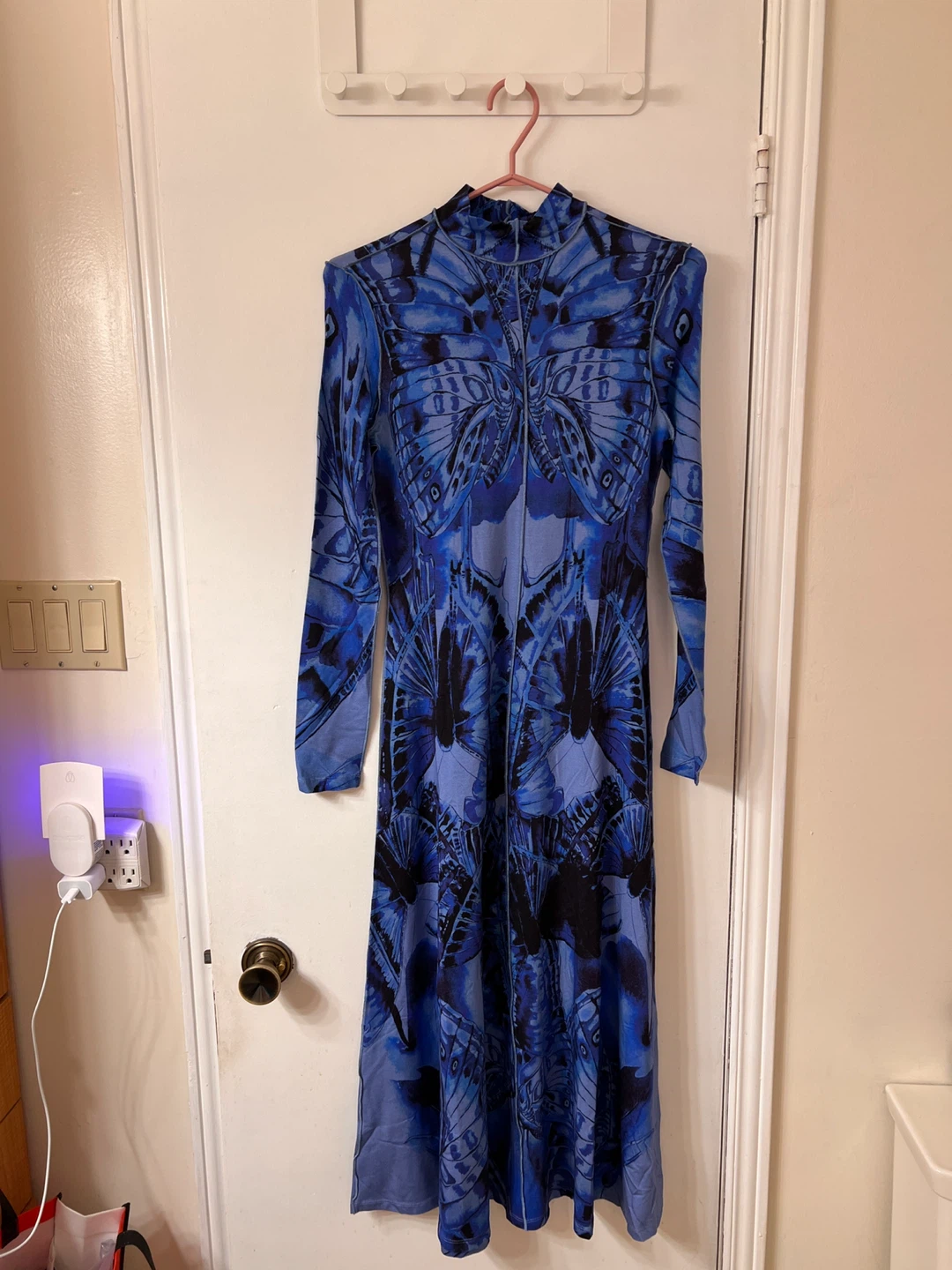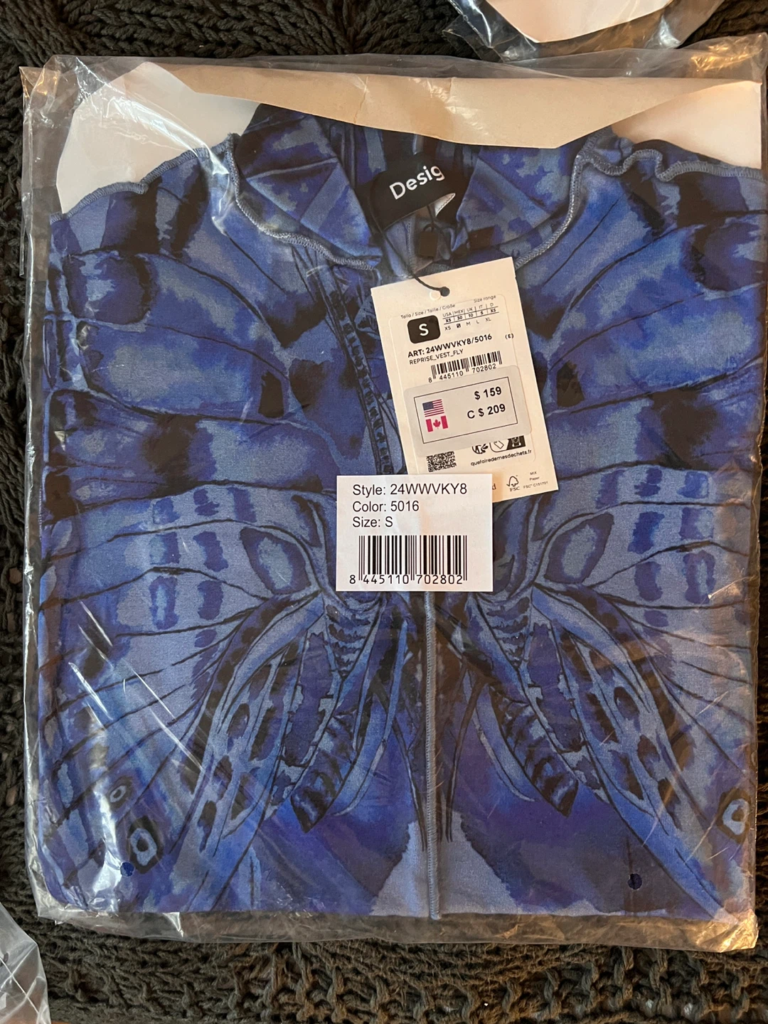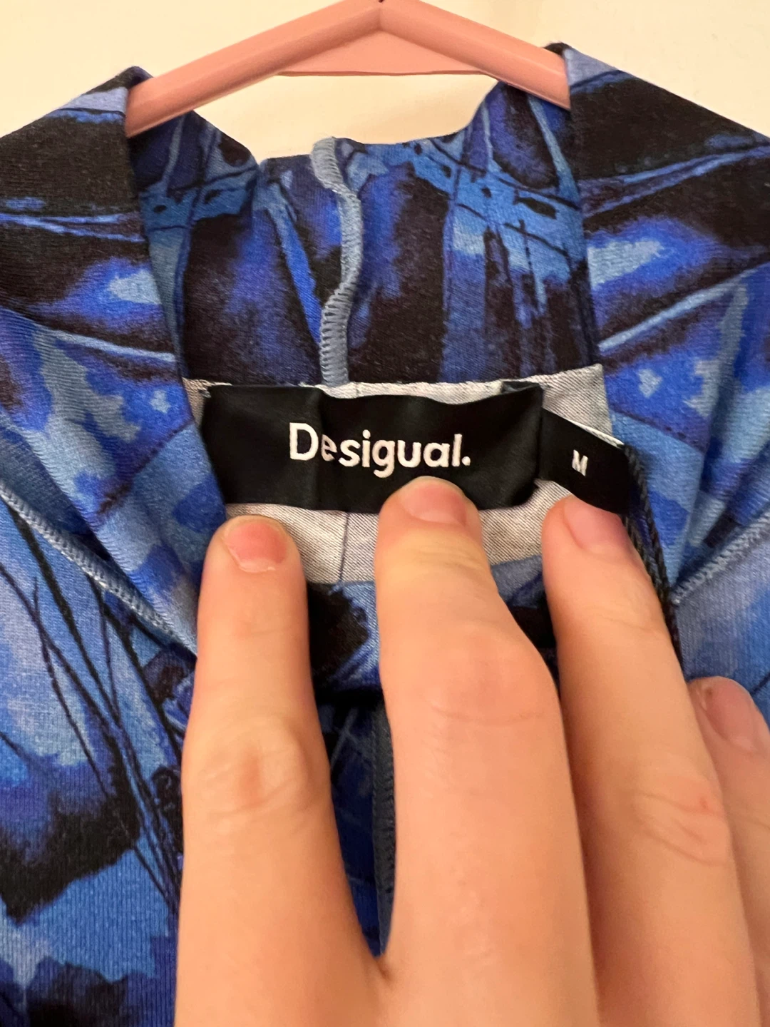 Selling a beautiful Desigual Reprise Vest Fly dress in size M. The dress features a unique blue butterfly pattern. Originally bought for $209 CAD, it's in great condition and ready for a new wardrobe!