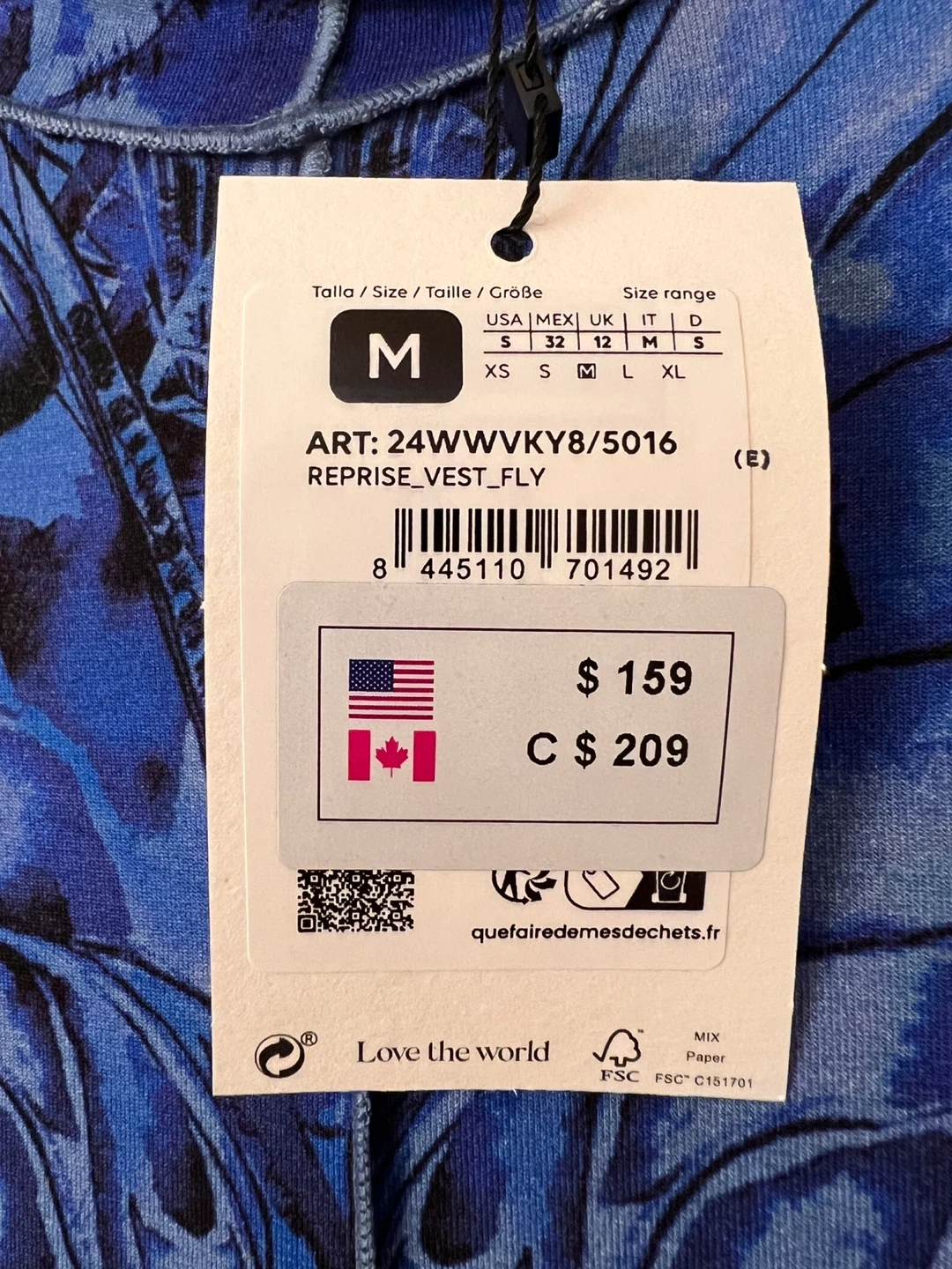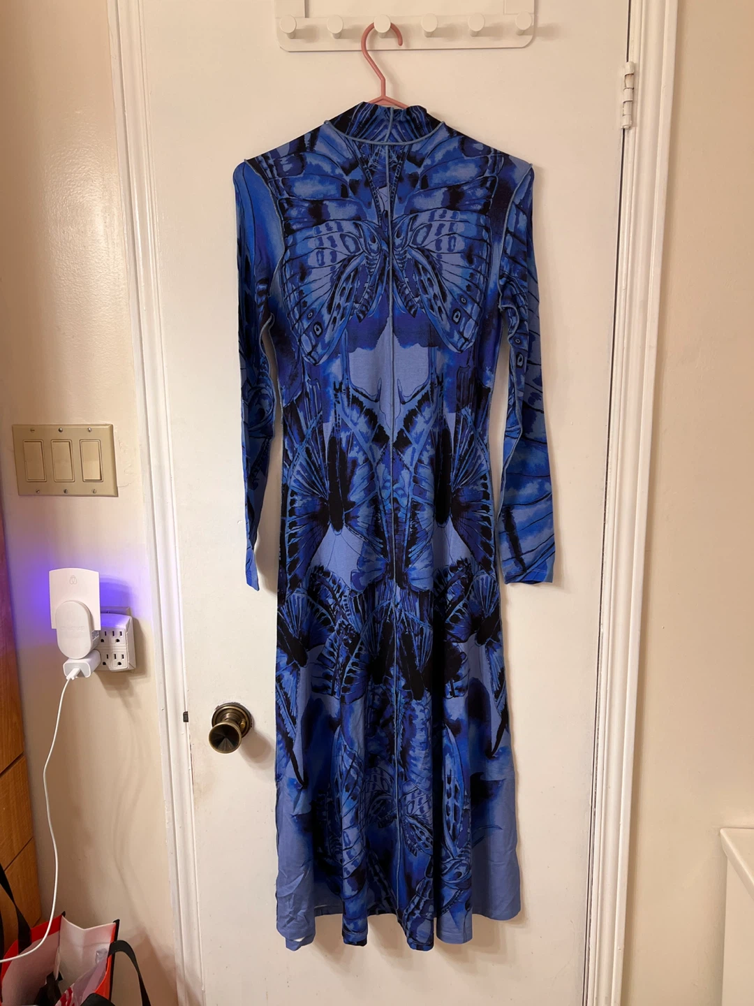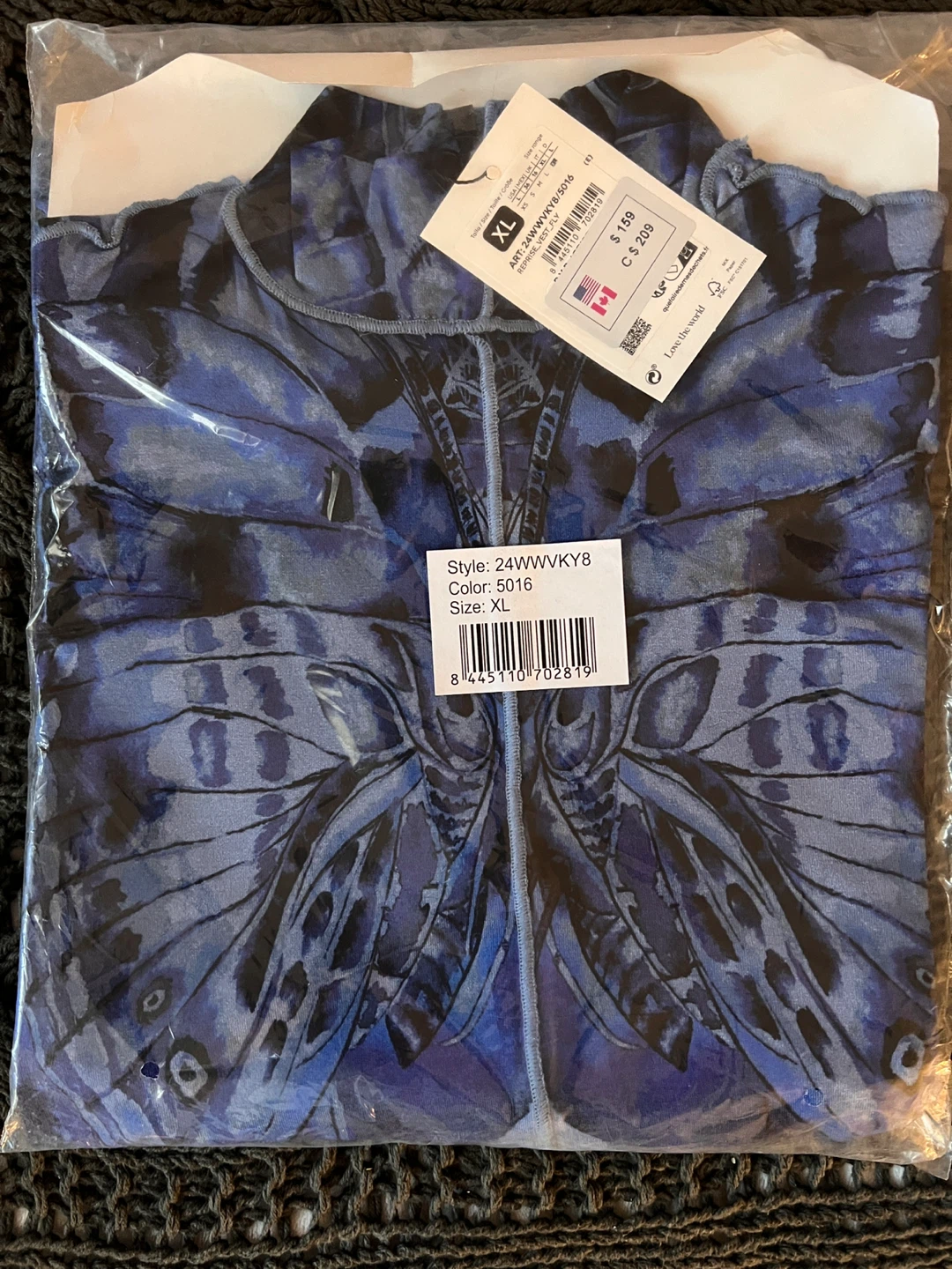 Selling a beautiful Desigual Reprise Vest Fly dress in size M. The dress features a unique blue butterfly pattern. Originally bought for $209 CAD, it's in great condition and ready for a new wardrobe!