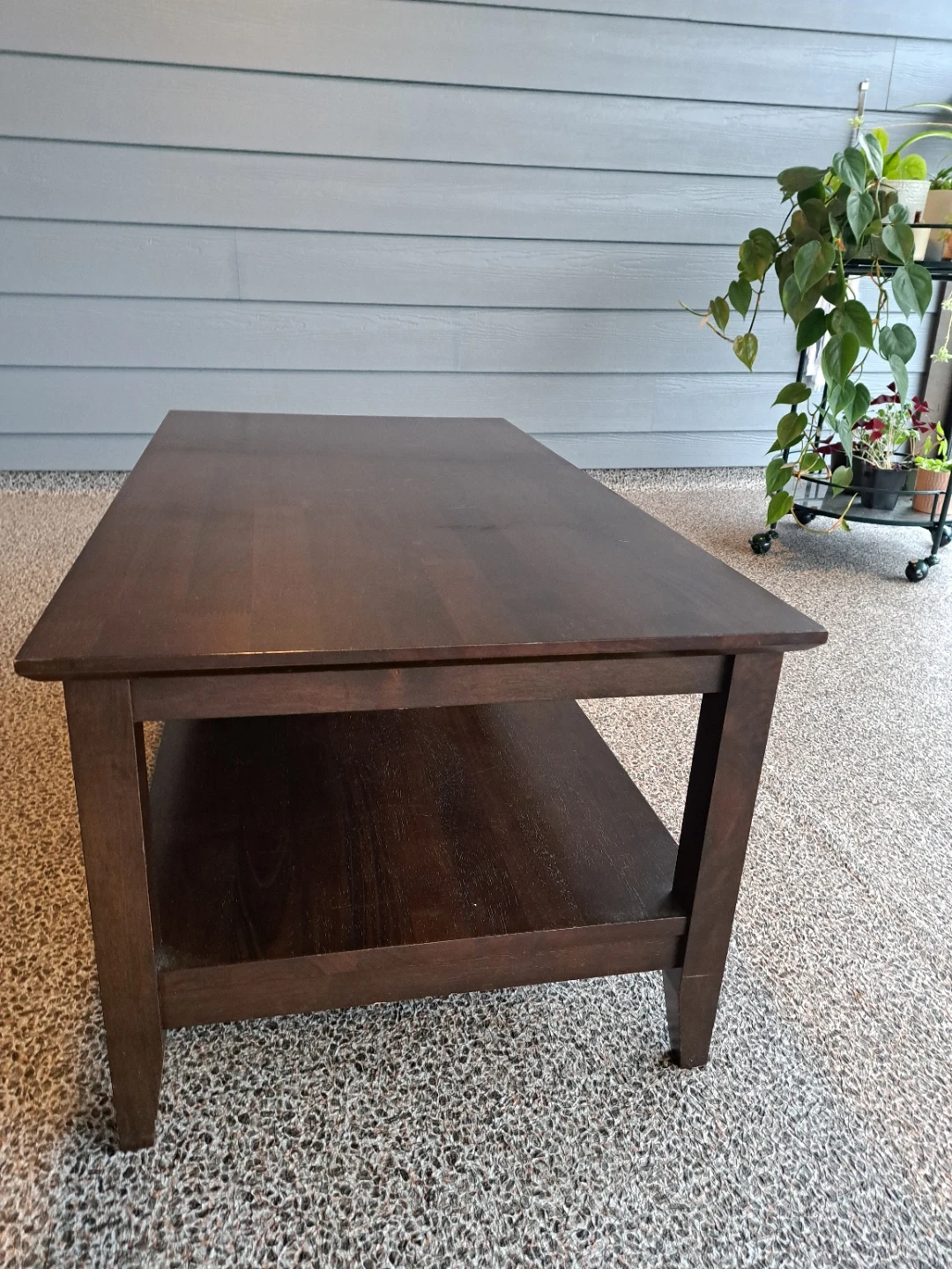 Buy & SellDark Brown Wooden Coffee Table 100x54x43cmDark Brown Wooden Coffee Table 100x54x43cm$45Selling a dark brown wooden coffee table. It has a shelf underneath for extra storage. There are some minor scratches on the top surface.EstadoGoodWHERE TO MEETYorkson Park CondoView MapSELLERverifiedMikeWilloughby620 reviews0 chats·1 favorites·18 viewsSEND CHAT TO SELLERHi Mike! I’m interested in your listing.Hi Mike! I’m interested in your listing.Get the Karrot app to chatSign In to chat