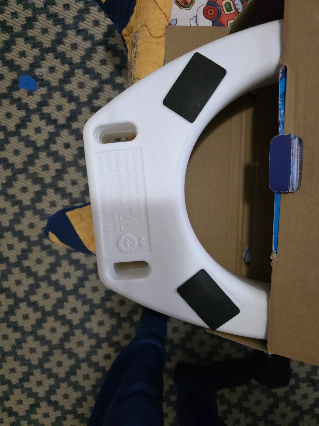 Selling a brand new Carex Toilet Seat Elevator in its original box! It fits most standard toilets and includes the necessary installation parts: 2 screws and 2 nuts. It has a weight capacity of 300 lbs