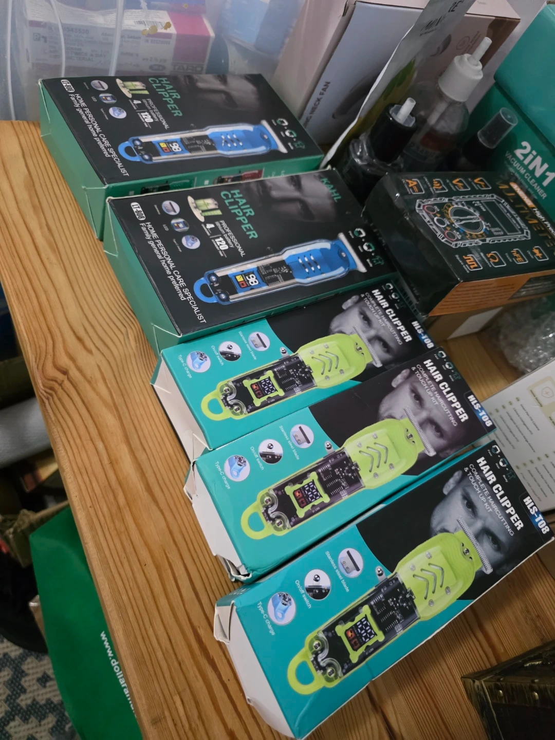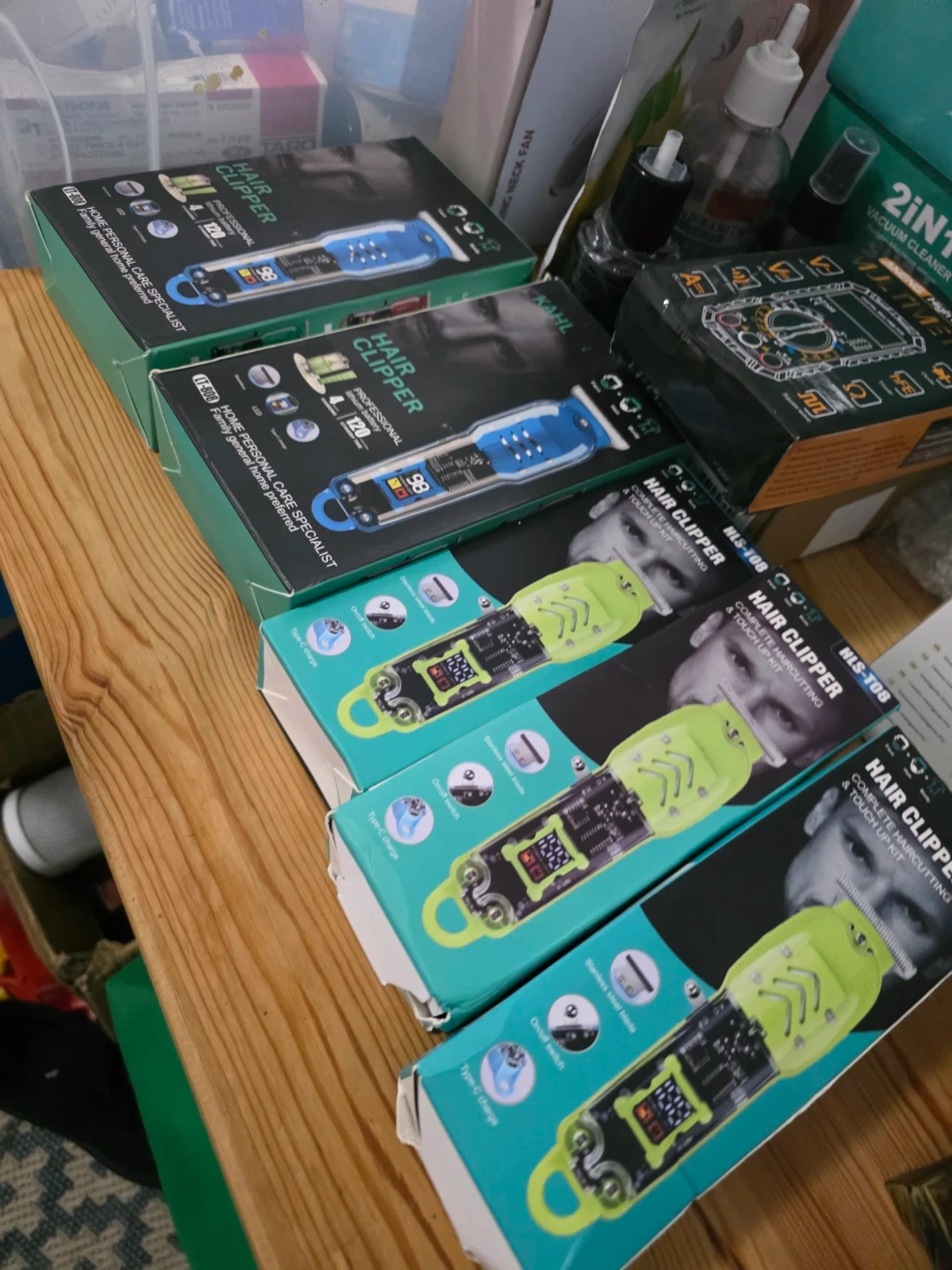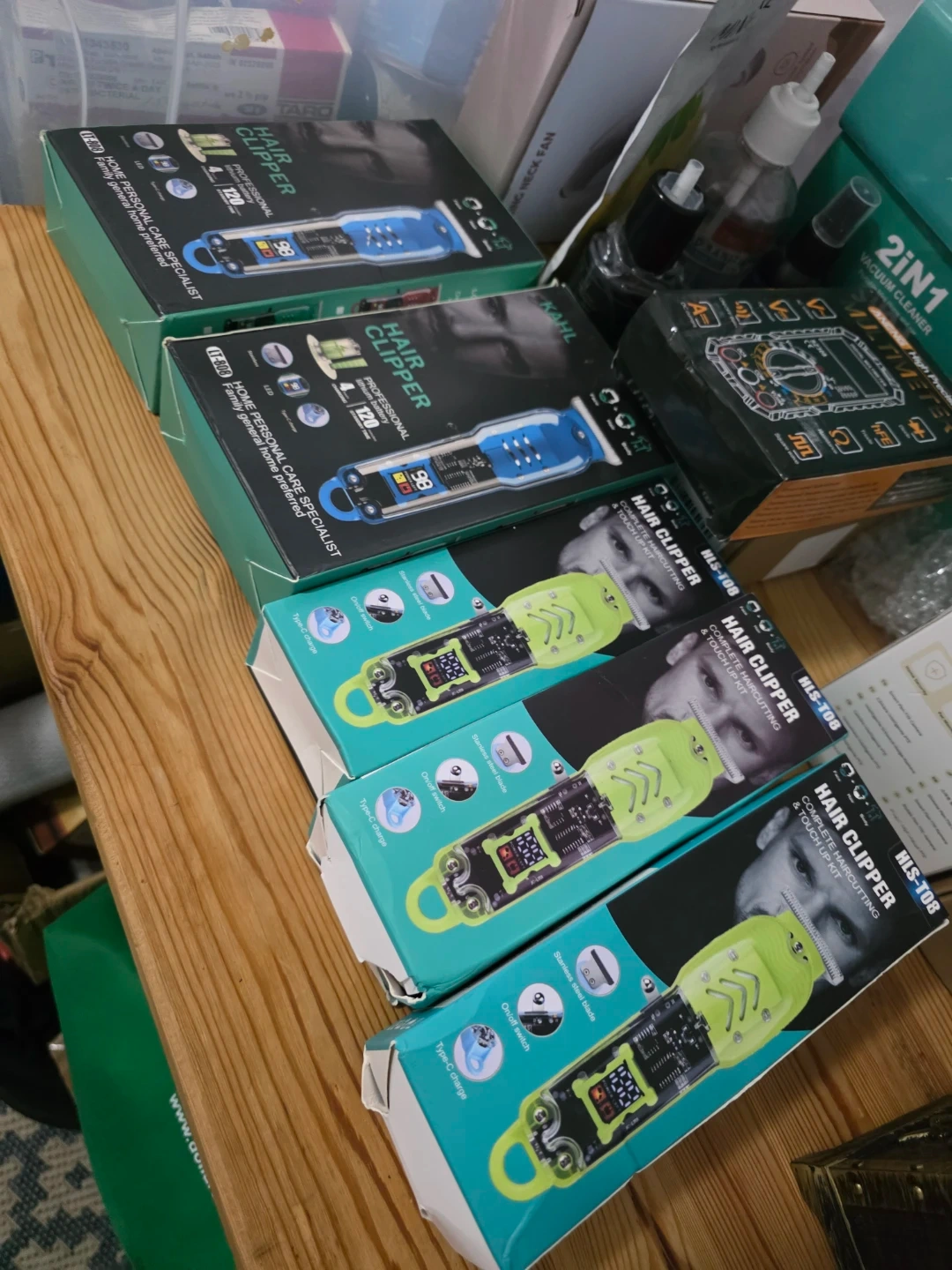 I have a new professional hair clipper set available. It comes with everything you need for a complete haircut and touch-up. The box includes the clipper, several attachment combs, a cleaning brush, and a USB charging cable. Get yours today!