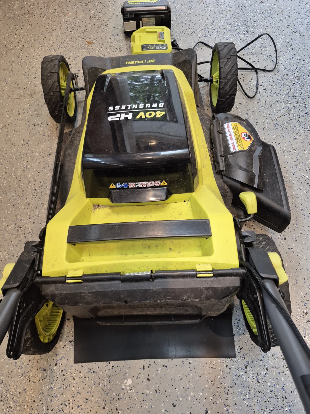 Selling a Ryobi 40V HP Brushless 20" Lawnmower. It comes with a 6Ah 40V Lithium battery and a charger. Great for keeping your lawn looking its best! Only used a couple times and looks and works great!