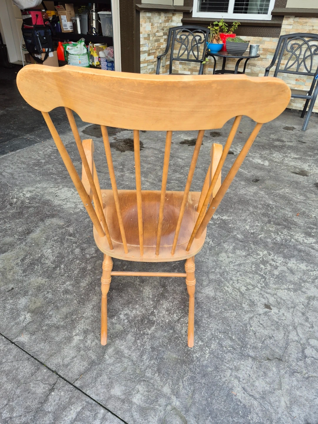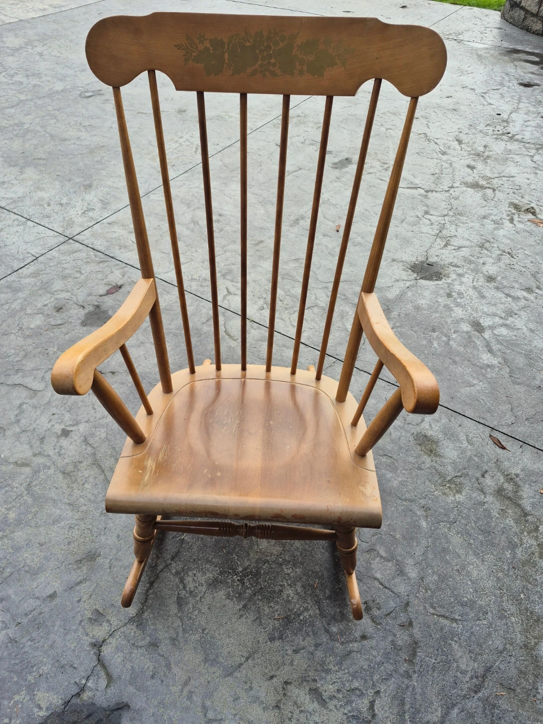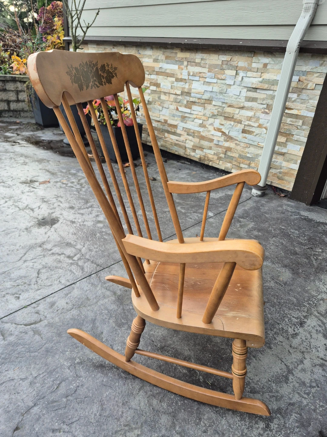 Selling a classic wooden rocking chair. It's in great condition and would be a lovely addition to any home. The chair has a beautiful natural wood finish and a comfortable design. Perfect for relaxing evenings!