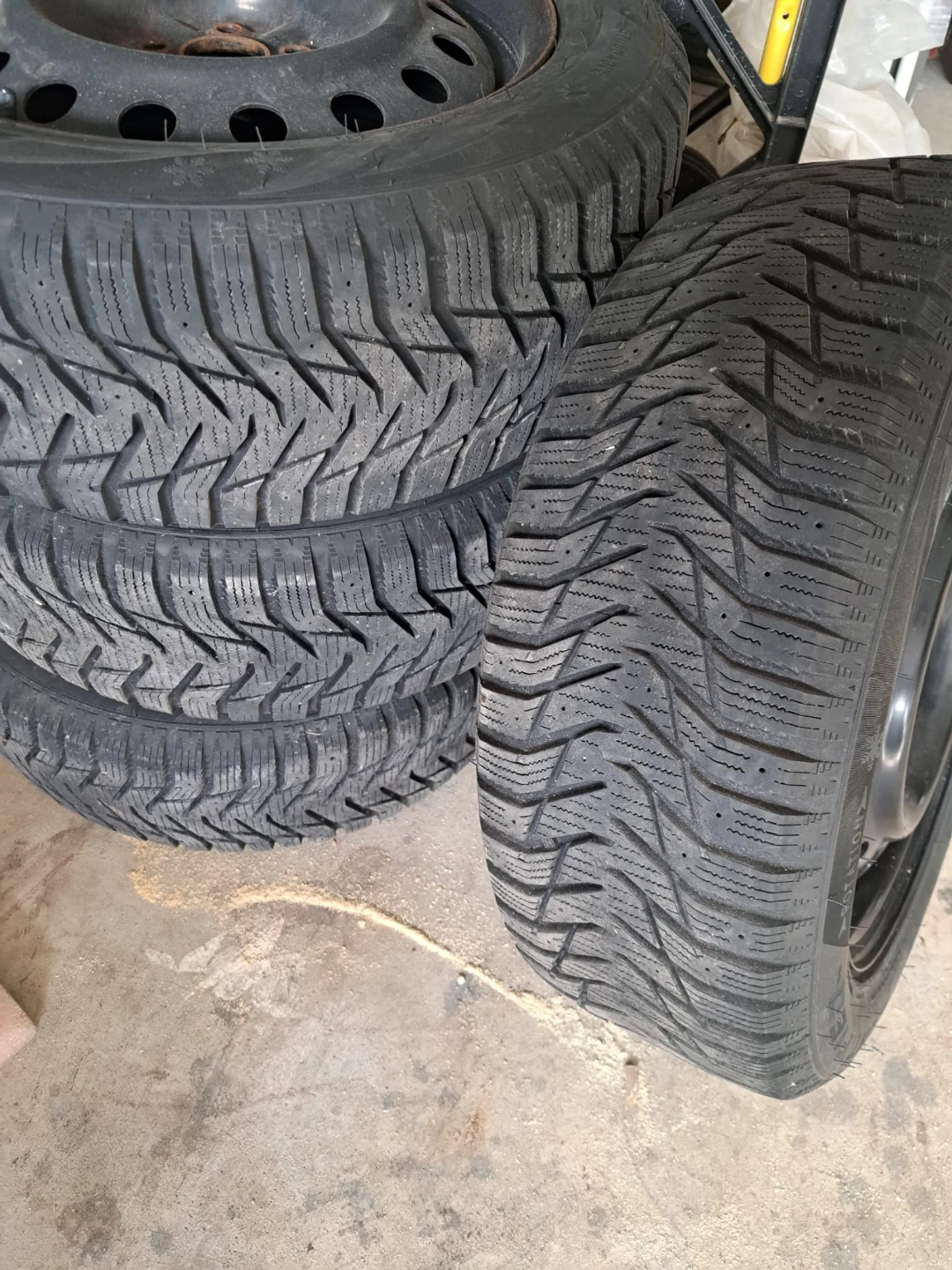 As is. 4 tires. Used one season. Was on a Toyota Matrix before. Pickup near Tower Hill Plaza on Bathurst in Richmond Hill only.